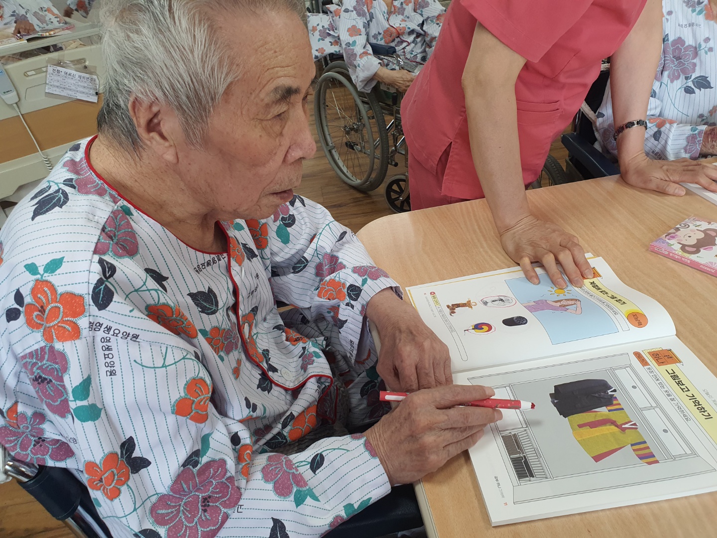 싱싱생생두뇌학교 책을 이용해 어르신들과 인지활동을 진행드렸습니다. 개인 책에 어르신 이름을 적어드리고 진행을 드렸습니다. 고령군립병원에서 어르신들을 위해 기부를 해주셨는데요 좋은 자료를 주셔서 감사합니다. 어르신들 책으로 인지 활동 진행드리니 즐거워 하셨습니다. |
