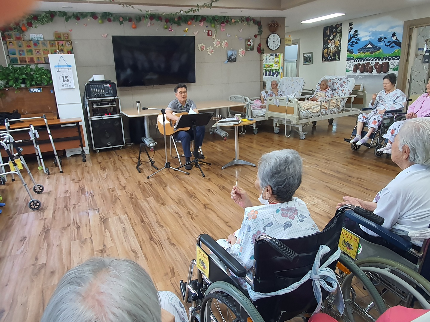 토크송 방식으로 어르신들과 이야기를 이어가며 노래도 연계해 재미있는 시간이 되셨습니다. 어르신들 이렇게 하니 재미있다고 하시며 막걸리 한잔 받아줘야겠다고 하셨습니다. |