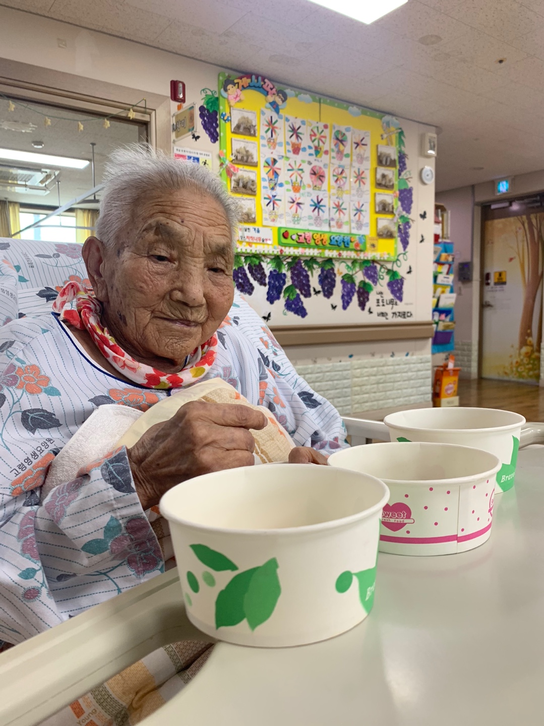 | 콩고르기는 어르신들 집중력이 좋은 프로그램으로 4가지 색깔이 콩을 하나하나 골라서 선별하셨는데 몇분 어르신은 5가지 색으로 나누시기도 하심 수행후 사탕을 나눠드렸더니 만족해 하심 | |||