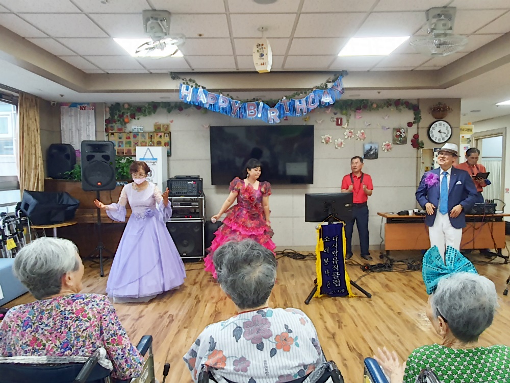 늘 최고의 공연으로 어르신들에게 즐거움을 주시는 다사랑뮤직클럽 소리봉사단에 오셔서 색소폰, 창, 트롯트 까지 멋진 연주로 어르신들 생신을 풍성하게 도움주셨습니다. 늘 감사합니다. 어르신들 너무 좋아하시고 박수치시며 흥있는 시간 되셨습니다. |