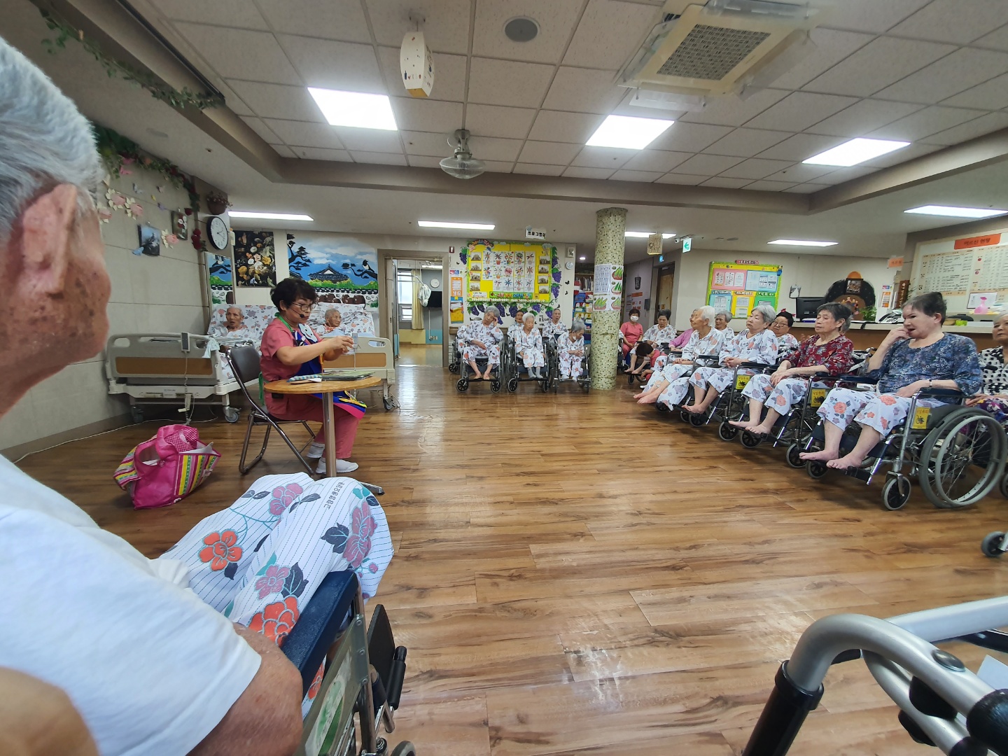 옛날 옛날에 호랑이 담배피던 시절에 ~예전에는 손주랑 자녀들에게 늘 들려 주셨던 동화를 이젠 어르신들께서 듣고 계십니다. 손00 강사님의 재미있는 입담에 늘 호흥도가 좋은 프로그램 동화구연시간입니다.