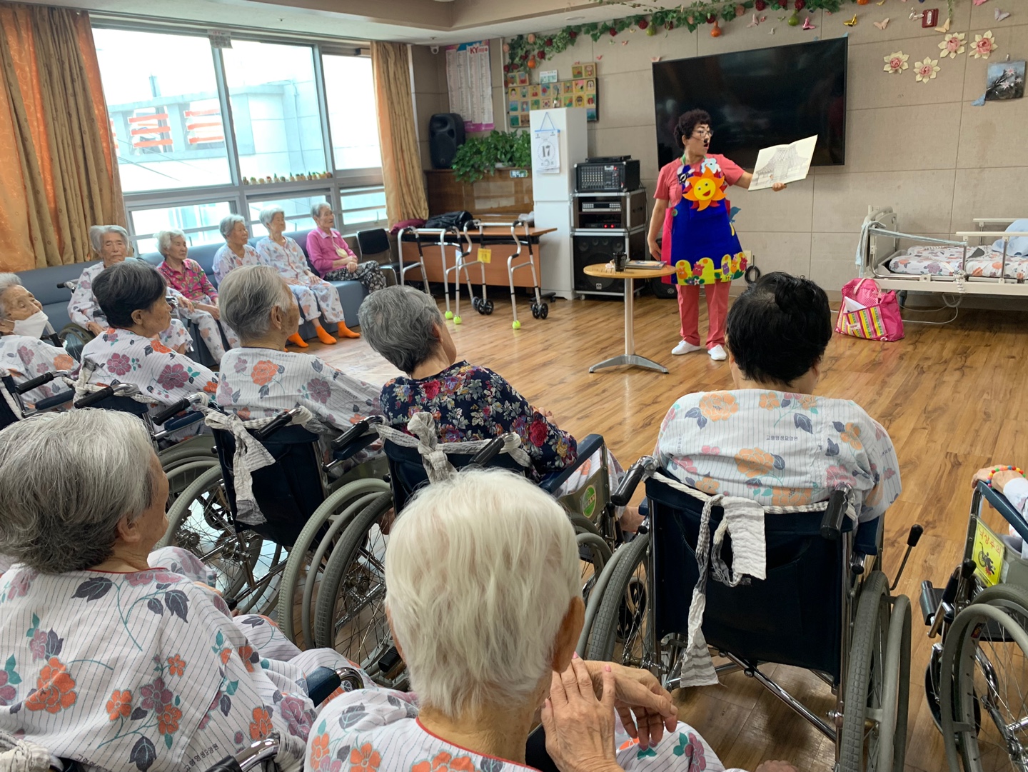 늘 어르신에게 재미있는 동화책을 들려주시는 손00 요양보호사 선생님