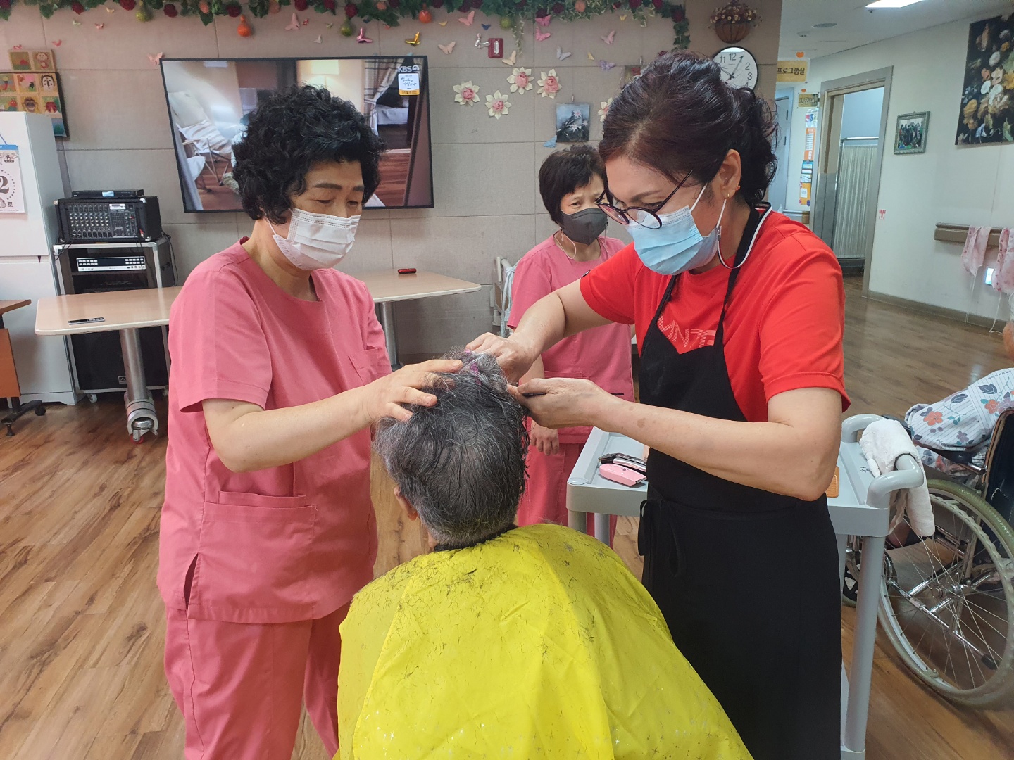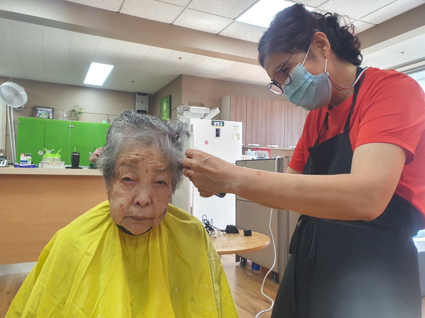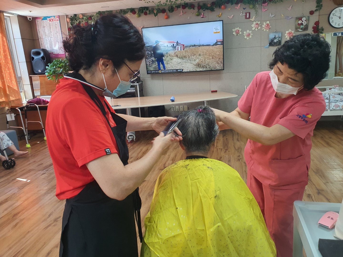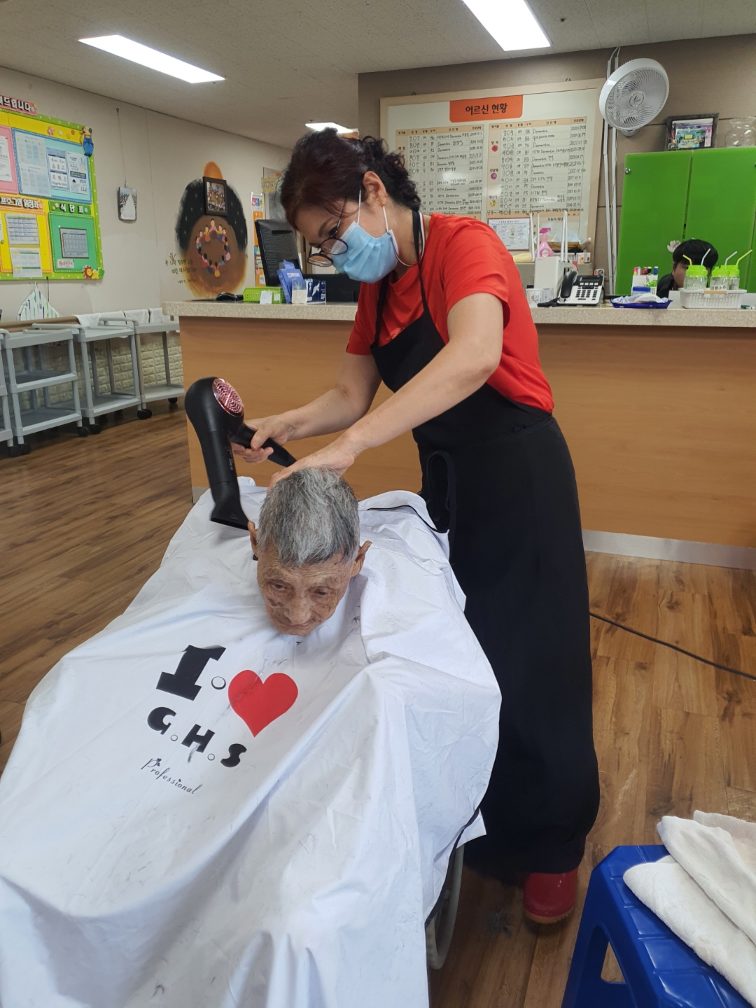 어르신 이미용이 있는 날입니다. 3층 어르신은 오늘 2층 어르신은 내일 진행드립니다. 코로나로 봉사자가 들어오실수 없으셔서 본 요양원 미용사로 직업을 가지고 계셨던 김귀옥 요양보호사 선생님께서 진행해 주셨습니다. 혼자서 그 많은 어르신들 미용하시느라 이튿날 앓을 정도로 힘드셨습니다. 힘듦을 알고도 수고해 주시는 요양보호사 선생님 너무 귀하십니다. 어르신들 그냥 할수 없다고 돈을 받으라고 하십니다. ㅎㅎ 이미용후 만족해 하셨습니다. |