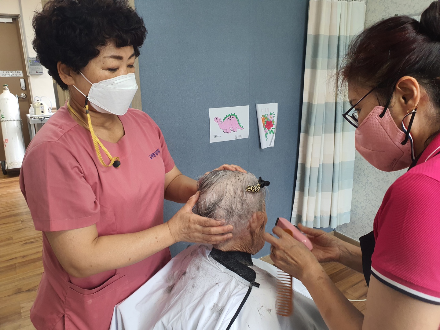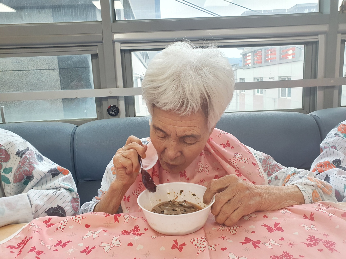 오늘은 이미용하시고 어르신들 멸치로 우려낸 육수에 100% 메밀로 만든 메밀묵채 한그릇 하셨어요 |