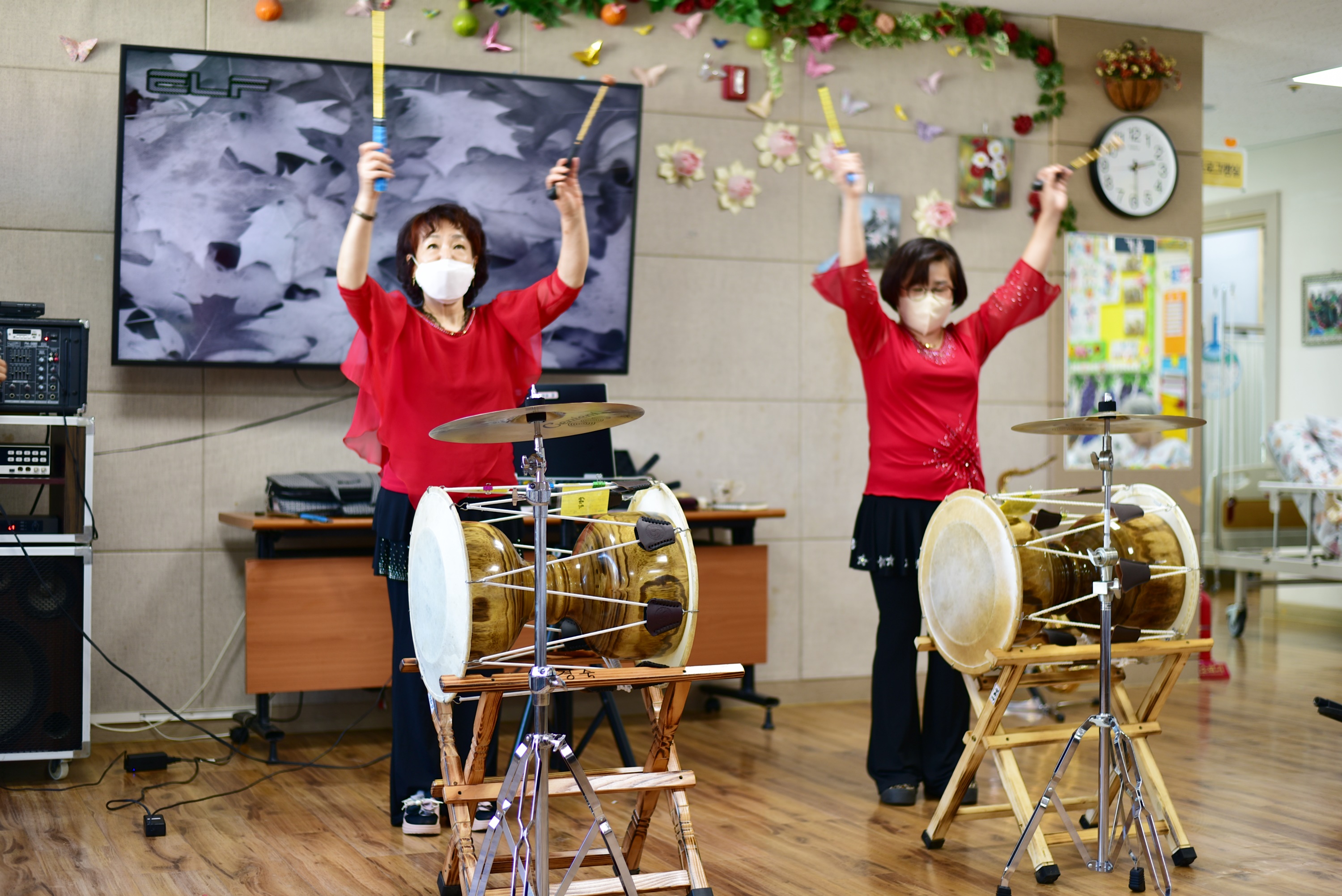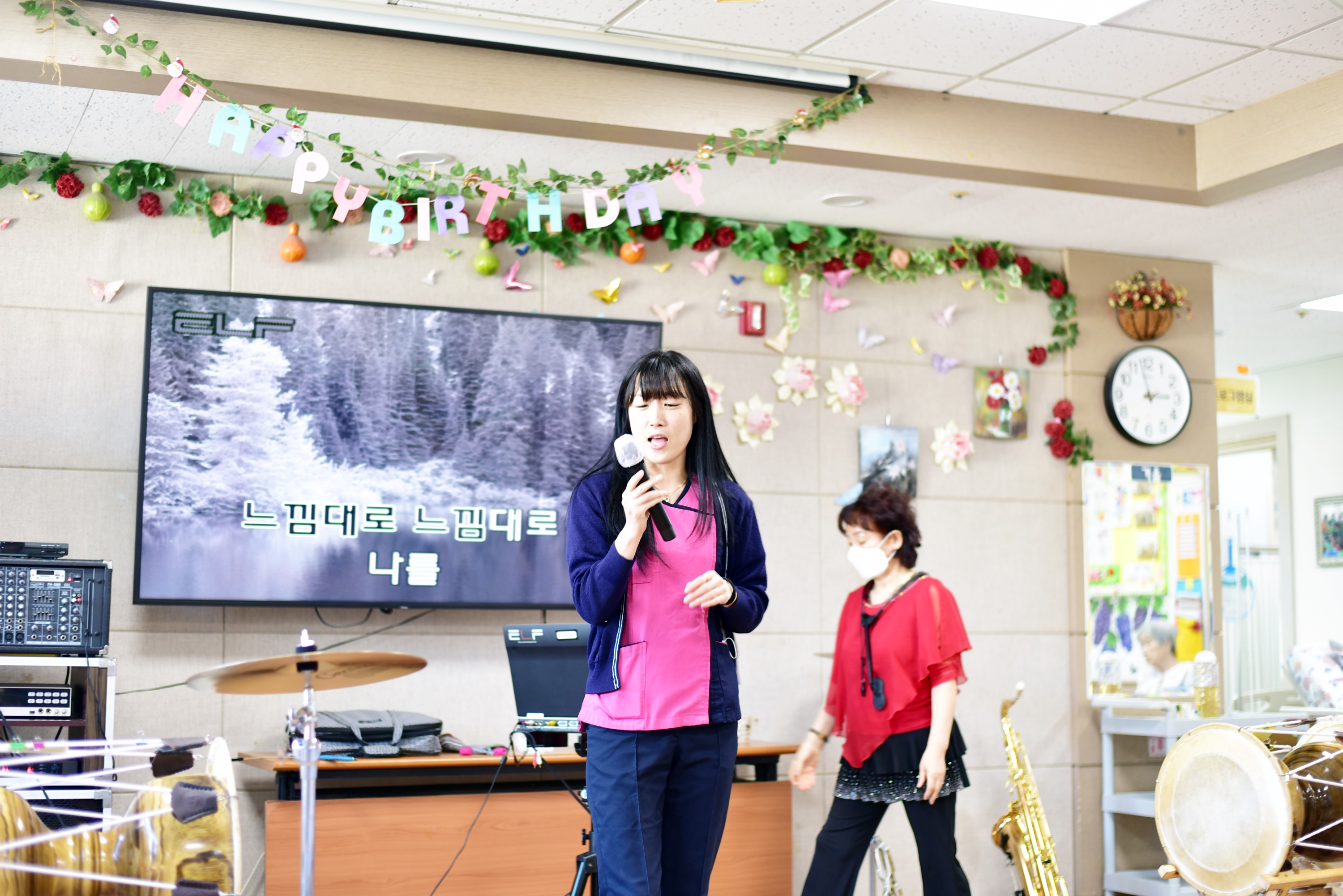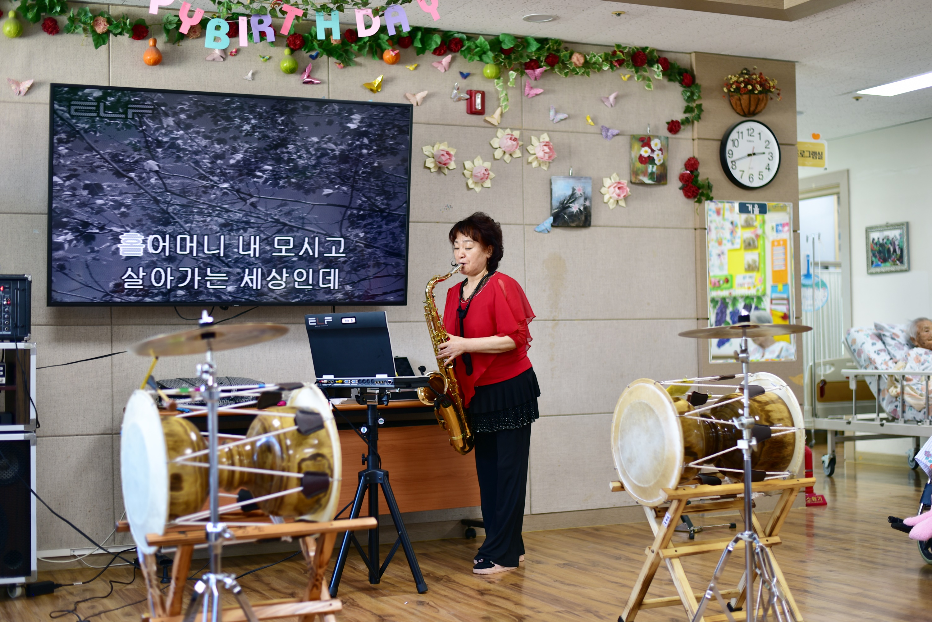 직원들이 장구 색소폰 노래 등을 배워 기량을 발휘 해 주셨습니다 어르신들을 위해 자기 개발을 열심히 하시는 선생님들 늘 감사함입니다 ~ 생신잔치에도 멋진 공연을 보여주셨습니다. |