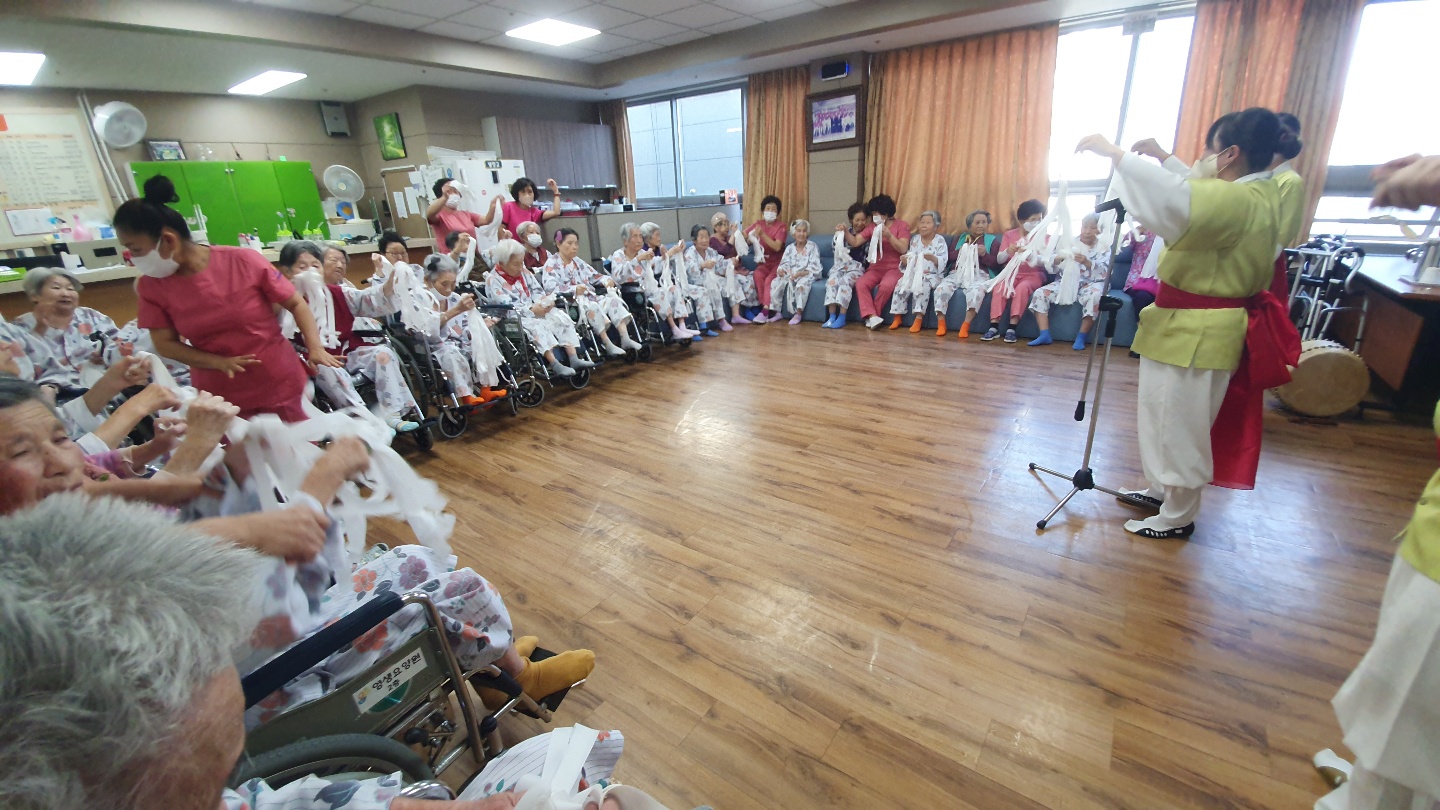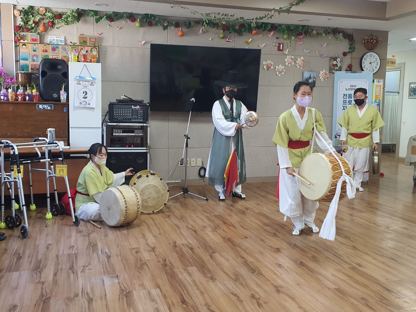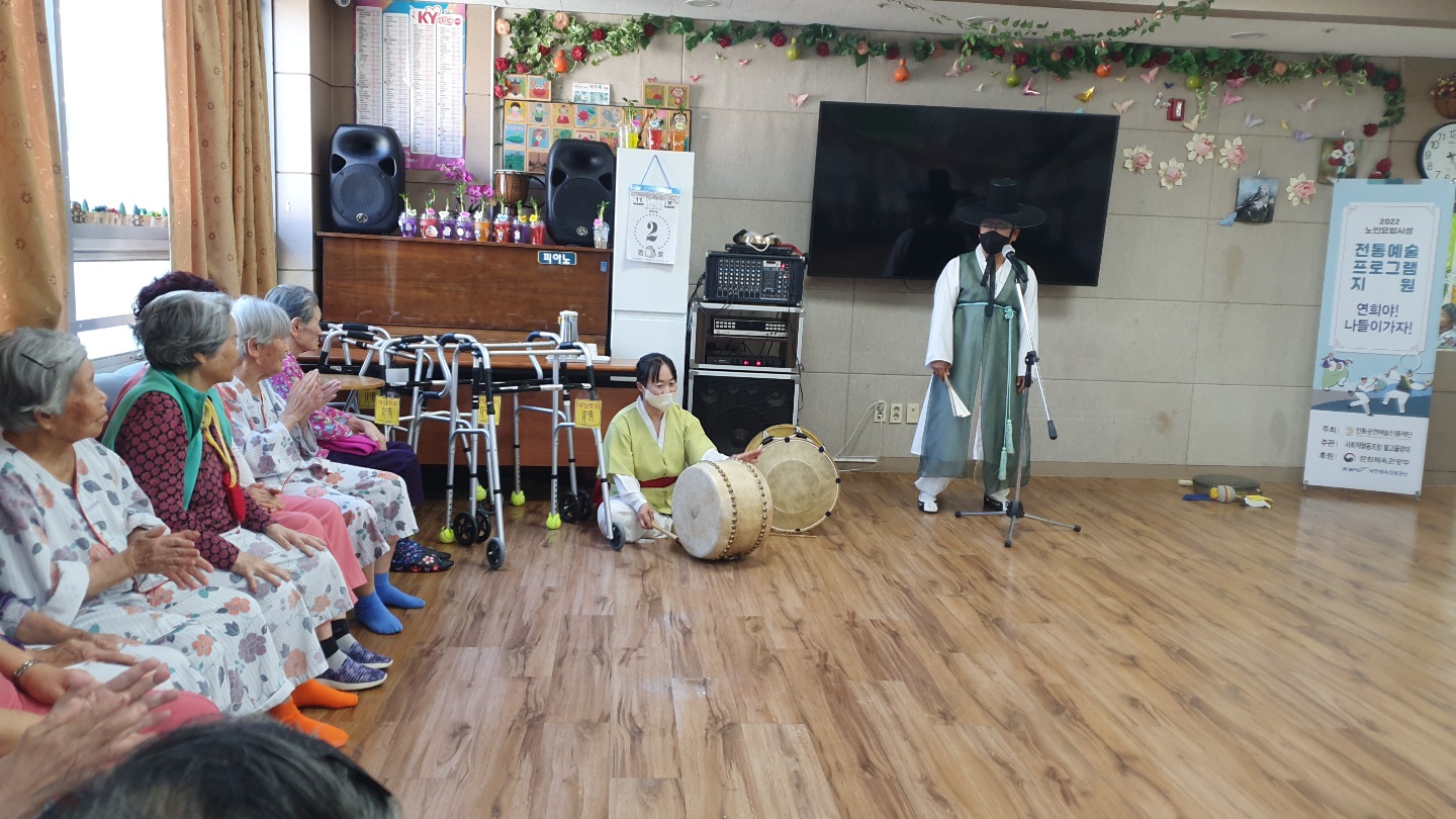 노인전통예술프로그램 사업 지원으로 성주군에서 사회적협동조합 별고을광대께서 오셔서 흥겨운 시간을 함께 해주셨습니다 4번째 시간으로 흥겨운 풍악놀이 한마당이 벌어졌습니다. 오늘은 흥부가를 들려주시면서 흥겨운 시간을 보냈습니다. |