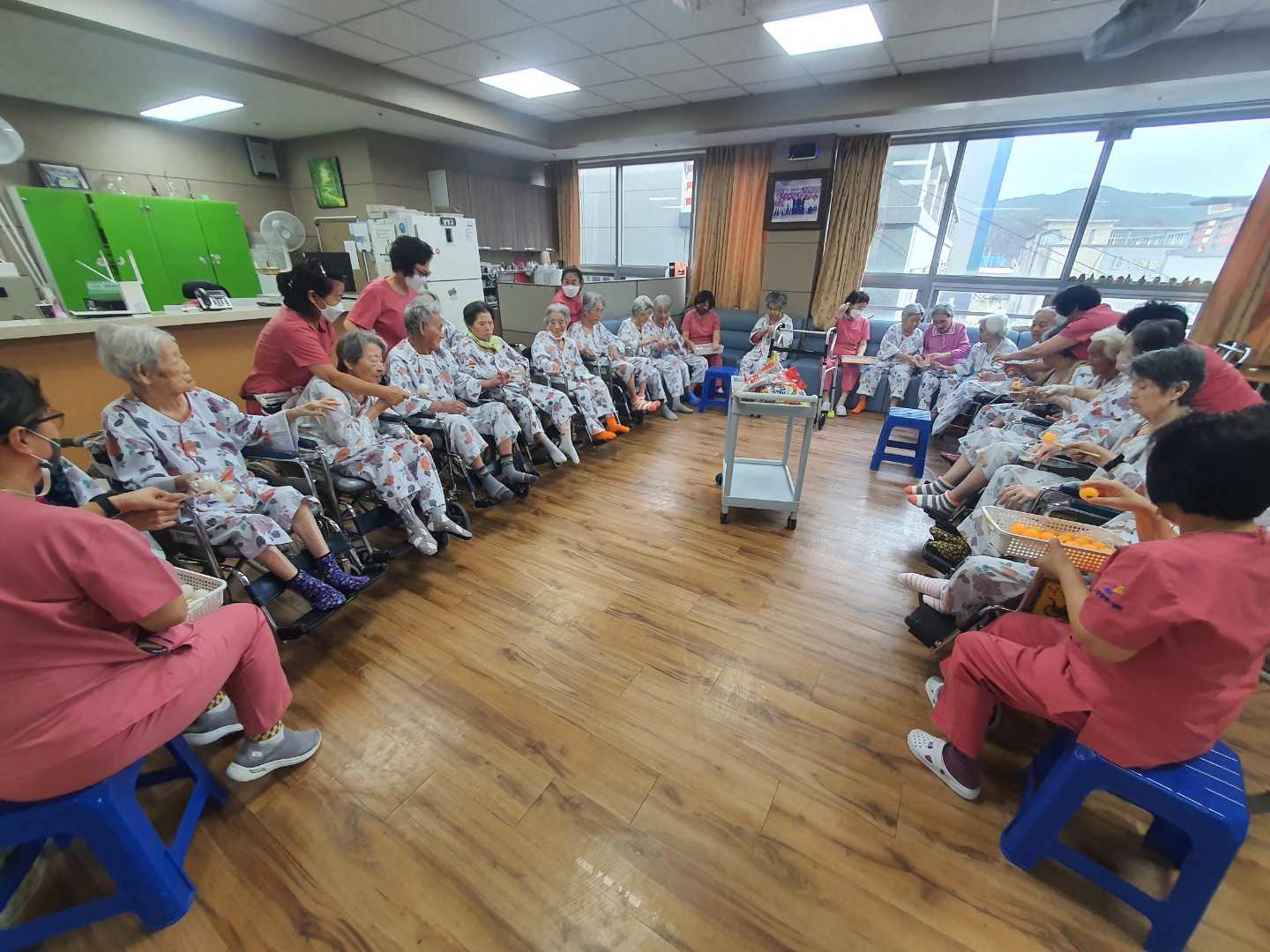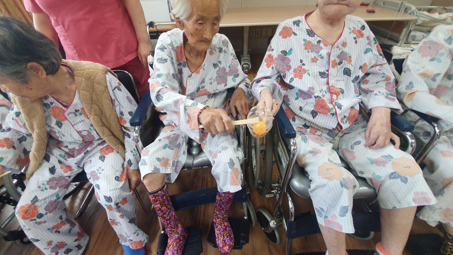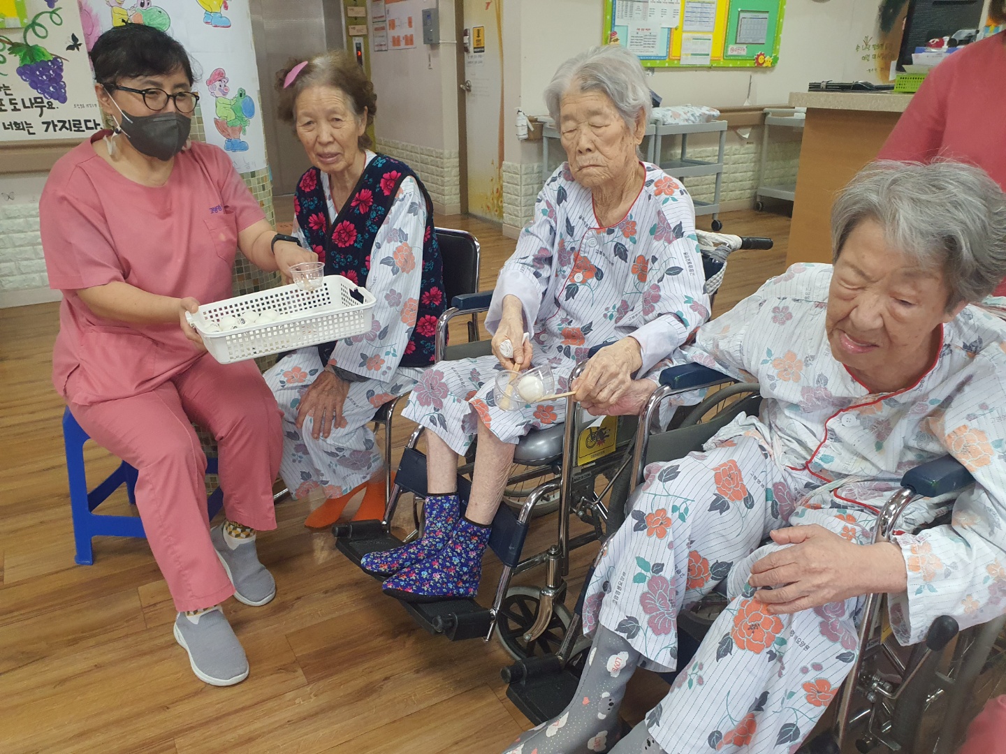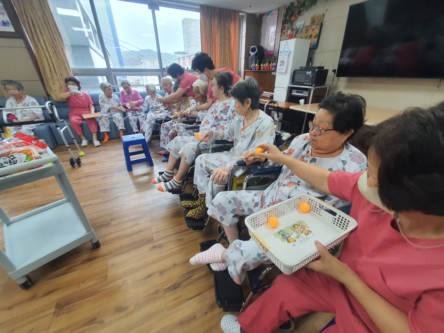 총 3판의 게임을 두편을 나눠 진행드렸습니다. 승자와 폐자가 없는 게임 어르신들 게임이 시작되자 전투적인 모습을 보이시며 열심히 공을 옆 어르신에게 이동 시킵니다. 집중력과 순발력 그리고 협동심이 있어야하는 게임으로 어르신들이 좋아하시는 게임중 하나입니다. 숟가락 도구를 만들어 준비 후 탁구공을 이용해 전달하는 게임 으로 이긴 팀에게는 사탕과 과자를 상품으로 나눔 드립니다. 진행하는 과정에서 눈치것 진행드려 똑같이 과자와 사탕을 챙겨 가실 수 있도록 도움드려 불만이 없도록 진행을 합니다. 게임 후 노래도 한곡하시며 즐거운 시간을 가졌습니다. |