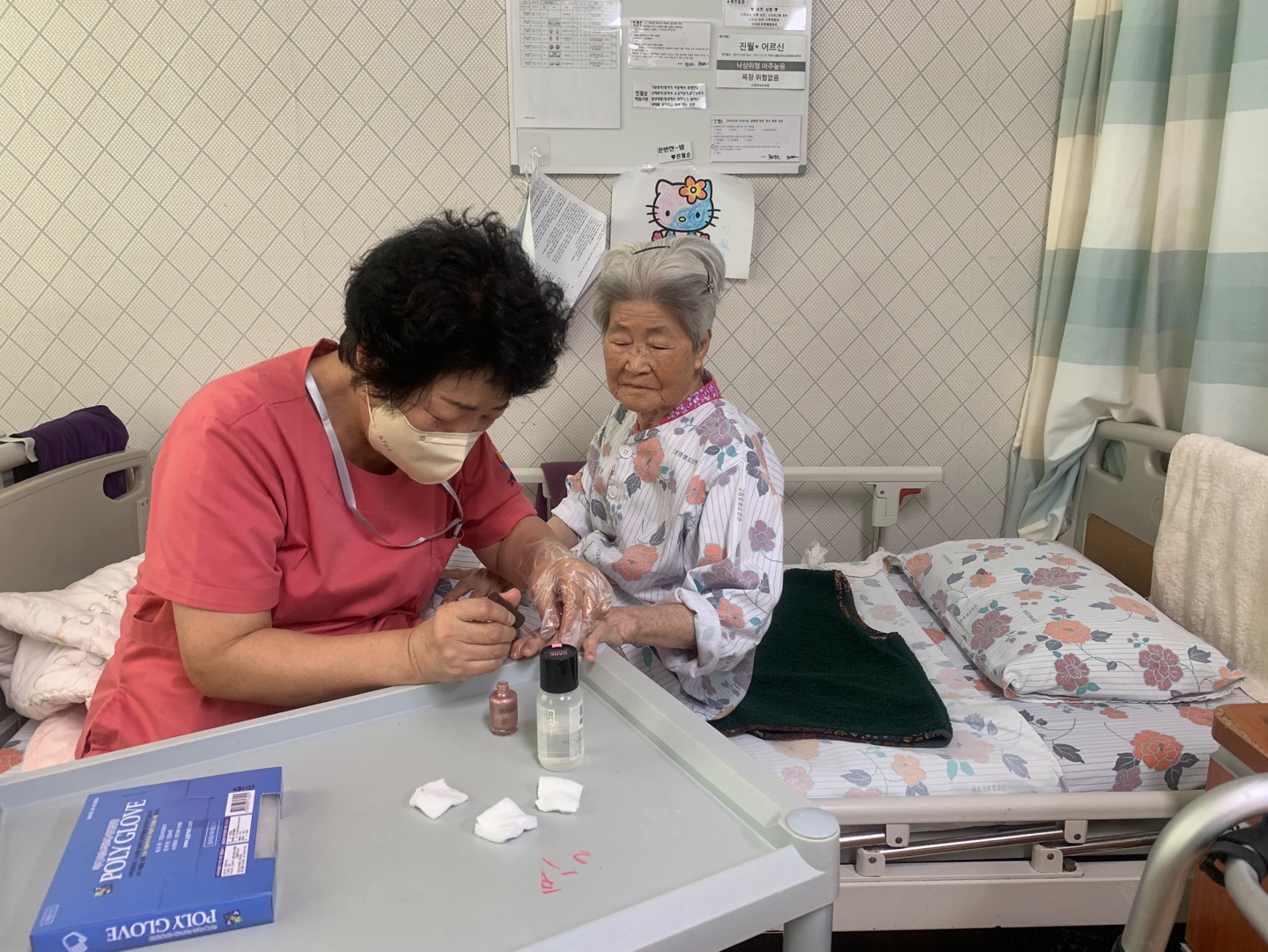 손네일을 준비했습니다 보호자들께서 면회 오시면 어르신들 손을 보시며 이쁘다고 칭찬해주셔서 어르신 기분을 up 시켜주셔서 준비하는 시간입니다. 면회 하시면서 한번이라도 더 이야깃 거리를 만들어 엄마 손이 참 이쁘네요 소리 들으면 어르신도 기분이 좋아지셔서 손네일 프로그램을 진행드렸습니다. 어르신들도 젊은시절 해보지 못하신 네일에 즐거워하시고 고마워 하십니다. |