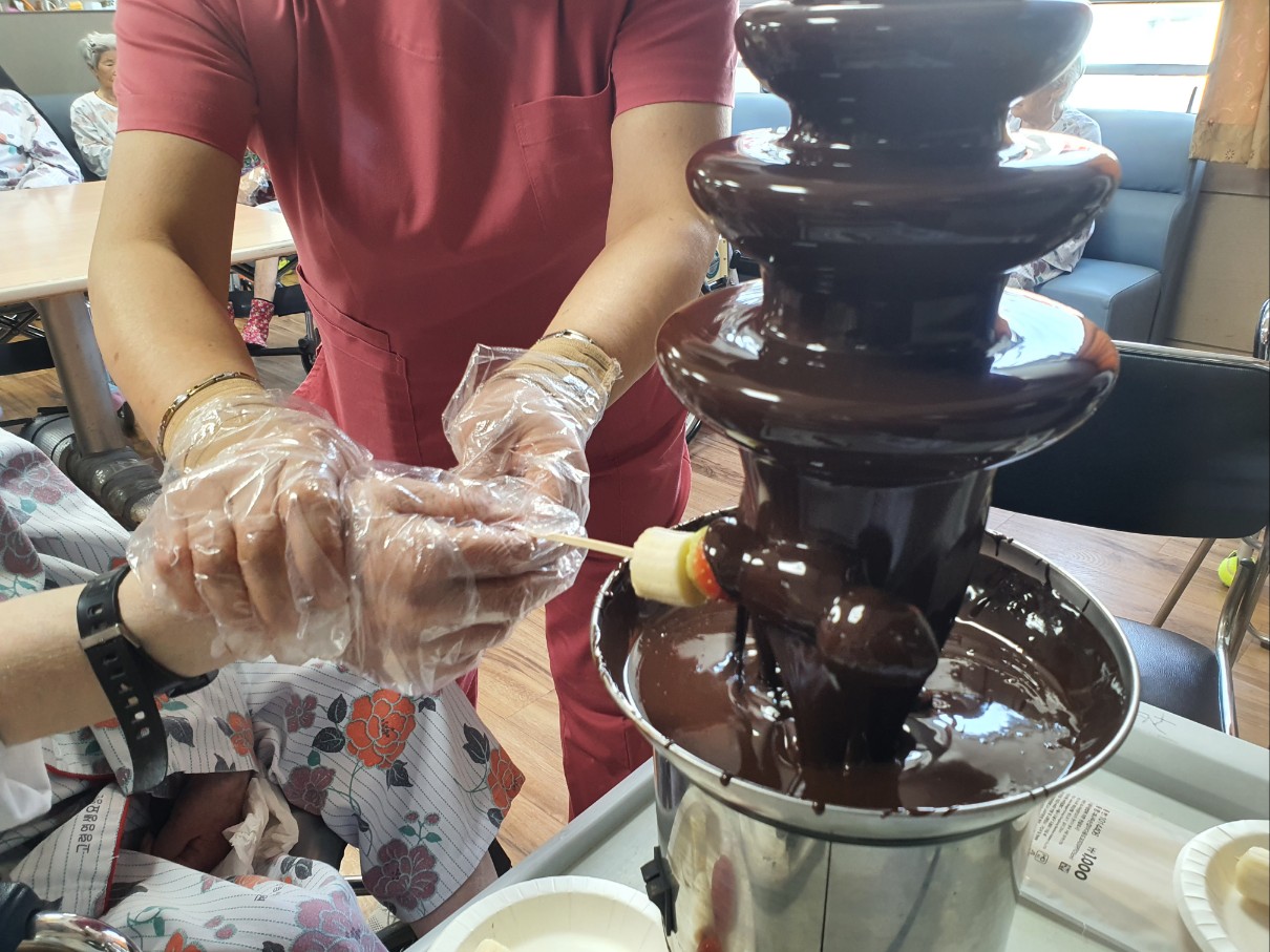 요리미술 시간~ 발란타인데이 바나나와 딸기로 폭포수가 쏟아지는 초콜렛 폭포수에 과일을 꼬치로 끼워 초콜렛을 듬뿍 묻혀 달달한 하루가 되셨습니다 달달한 하루 ~ 되셨습니다 |