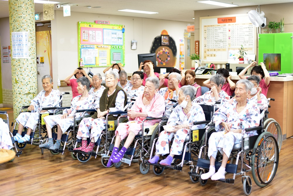 수박에서 당나귀가 나온다는 이야기를 듣고 어르신들이 웃음보가 터졌습니다 호랑이가 효자가 된 이야기도 함께 들려주셔서 재미있는 동화시간이 되시고 손유희도 잘 따라하셨습니다