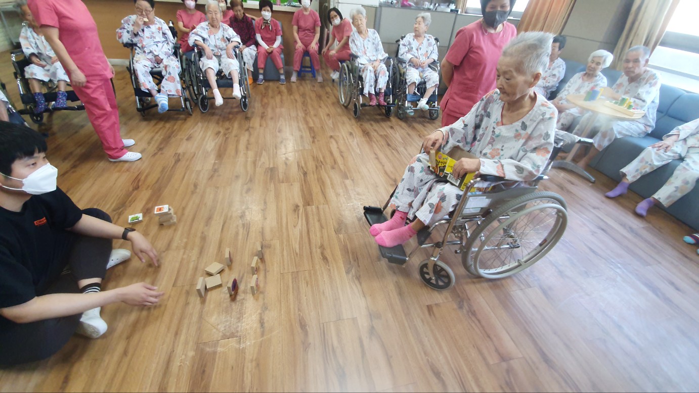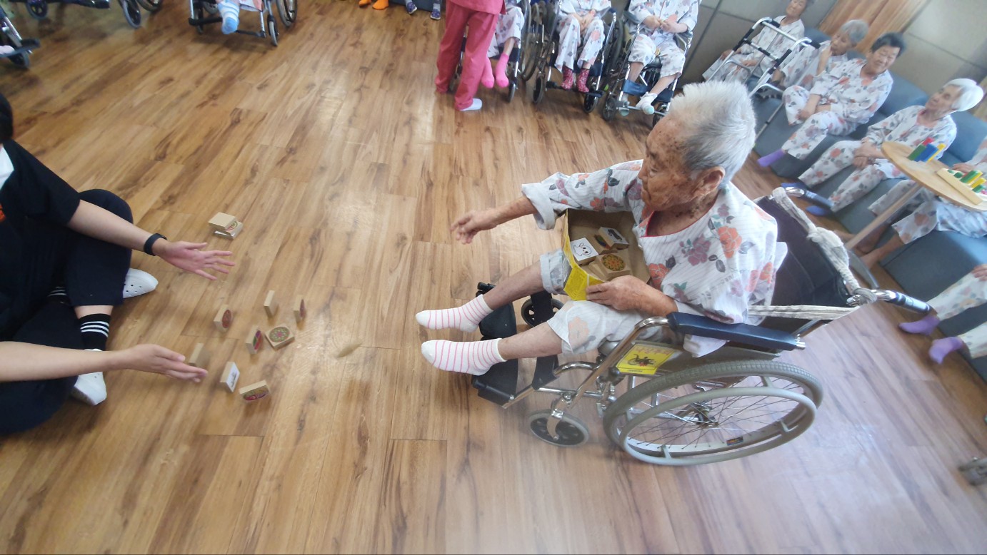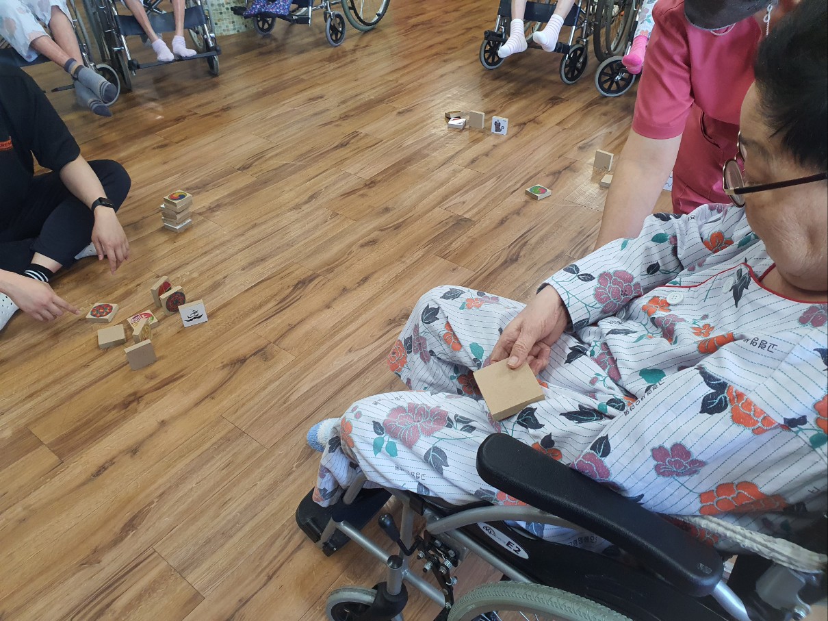 추억의 전통놀이 비석치기 일정한 거리에서 손바닥만한 작은 돌을 발로 차거나 던져서 상대의 비석을 쓰러뜨리는 놀이인데요 돌을 사용하기는 ㅎㅎ 어르신들께서 직접 색칠하신 나무 토막으로 비석치기 놀이를 진행 합니다. 비석이 넘어진 갯수만큼 과자를 나눠드리고 사탕은 덤으로 드렸더니 승부욕이 대단하셨습니다. 김00 어르신은 지난번 윷놀이가 더 재미있었다고 하시며 윷놀이를 했으면 의견 주셔서 다음 시간에는 윷놀이 도움 드리기로 하셨습니다