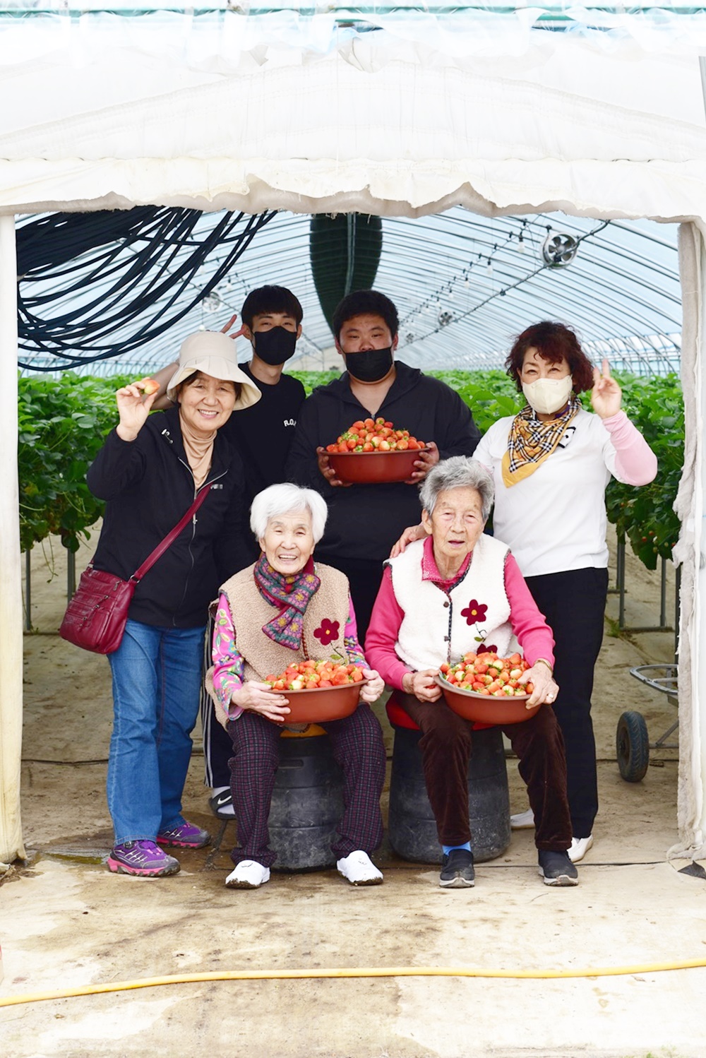 고령딸기체험으로 덕곡면 딸콤농장에 다녀왔습니다 어르신들과 즐거운체험 고령영생요양원 추억소환프로그램 과거 딸기 따셨던 ~ 어르신 모시고 추억 프로그램으로 딸기체험 다녀오셨어요 ~^^요즘은 딸기가 위에서 자라네 ~~^ 하시며 세상 좋아졌다 하셨습니다 다녀오신 후 보호자에게 카톡으로 사진 전달드리고 '어르신 오늘 잘 다녀오셨습니다 딸기를 능숙하게 따시고 블랙데이 짜장면도 맛있게 드시고 오셨어요 /문자 드림