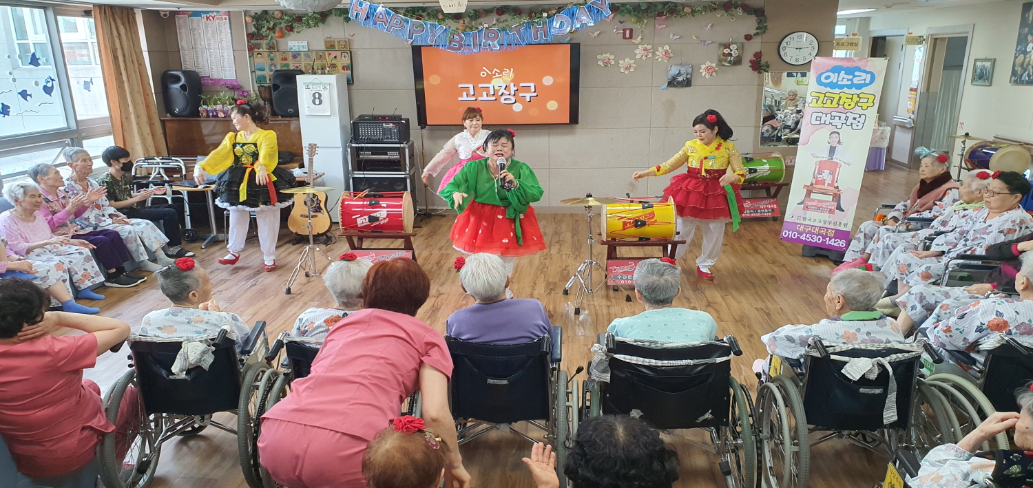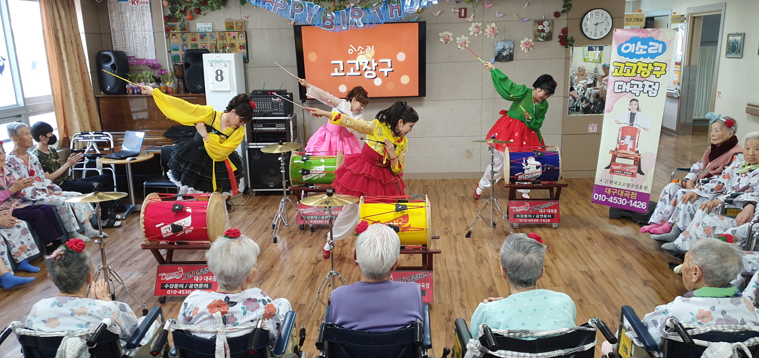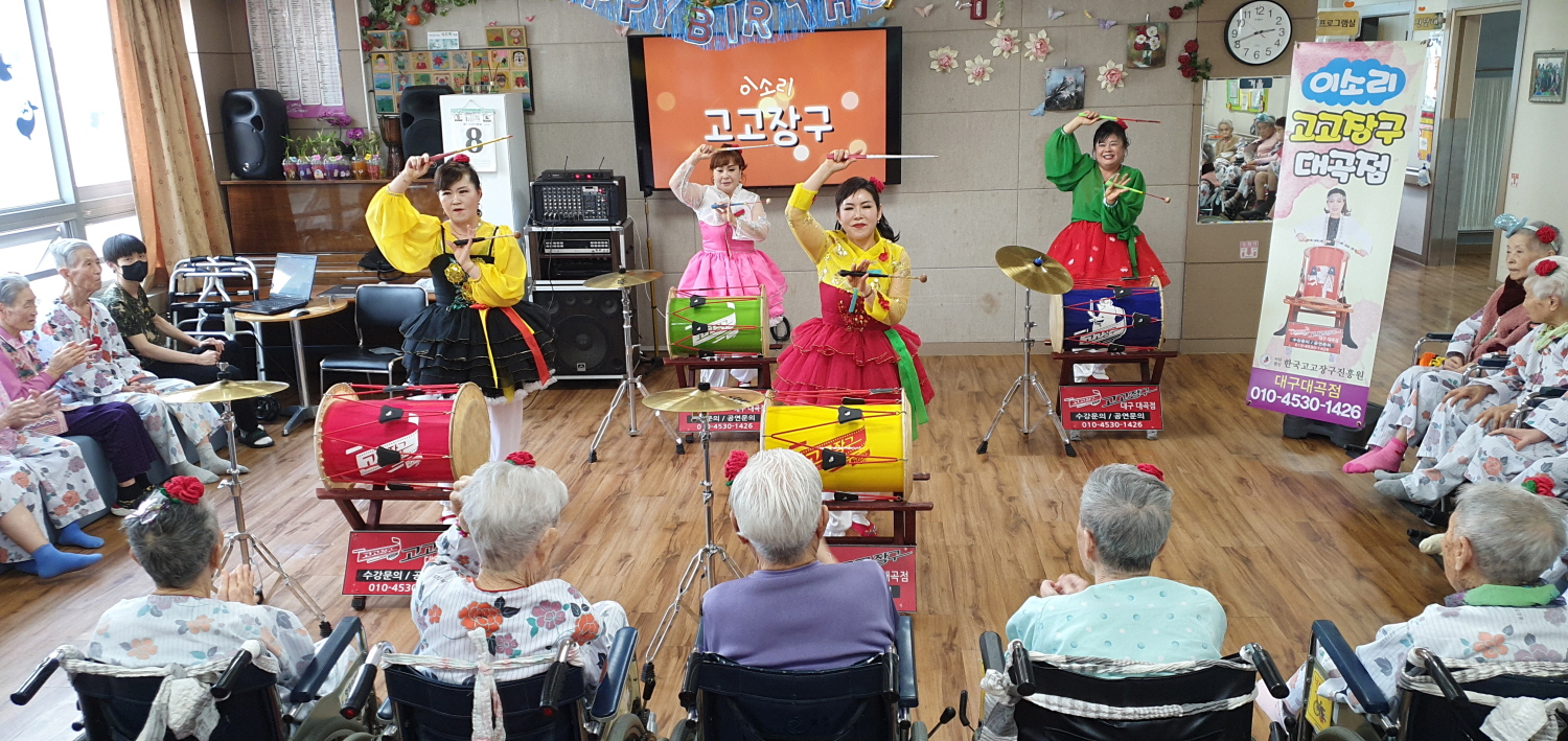 어버이날인 8일 당일 대구 이소리 고고장구 봉사단이 오셔서 신나는 시간을 허락해 주셨습니다. 감사합니다. |