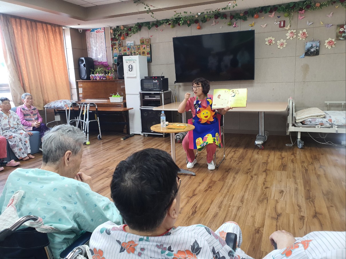 동화구연 어르신들이 좋아하시는 프로그램으로 집중력이 좋으십니다 늘 어르신을 위해 봉사해주시는 손00 선생님 감사드립니다