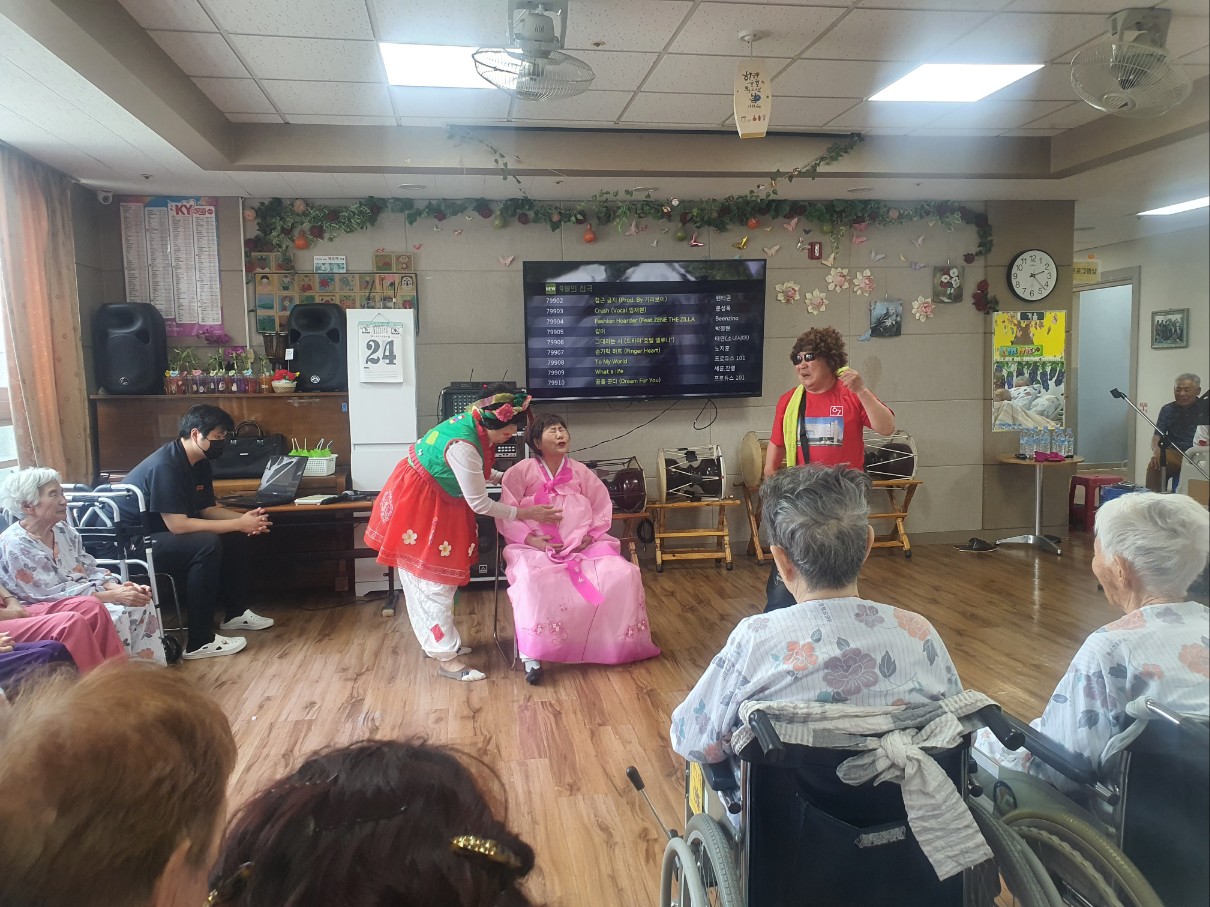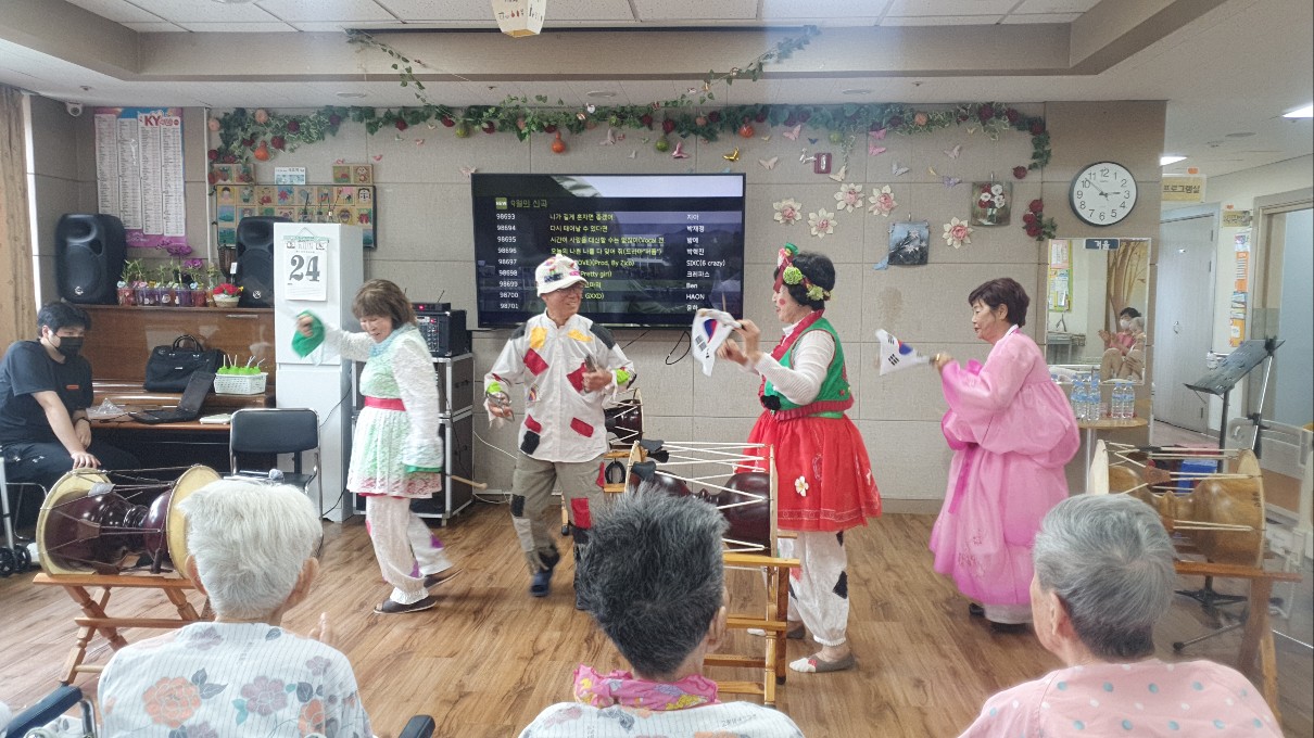 | 품바와 장구 그리고 연극 웃음치료로 어르신들에게 즐거운 시간을 주셨습니다 늘 ~ 어르신들에게 행복한 시간을 주시는 삼대리품바 시간 장단을 맞춤하는 시간도 가지시고 어르신 노래 시간도 가지면 음악활동 시간 되셨습니다 | |||