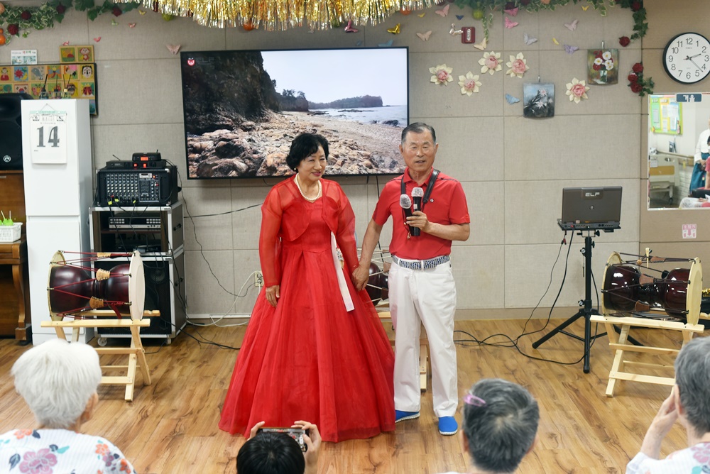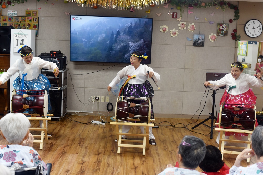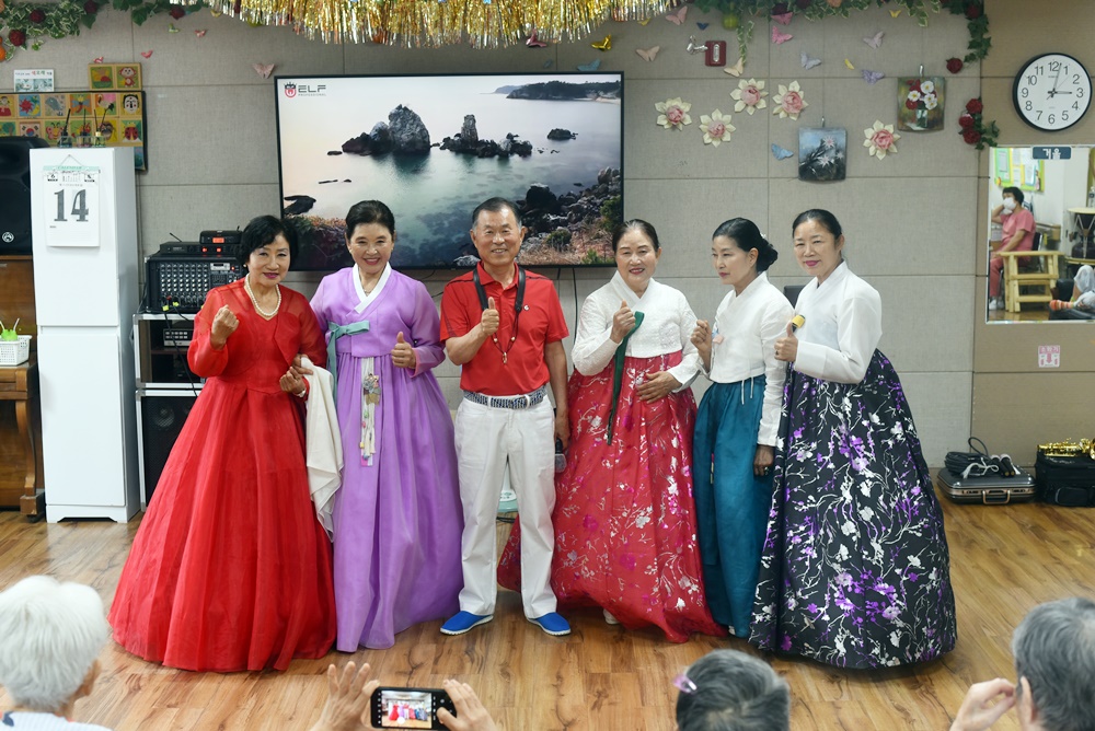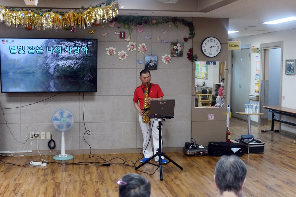 어르신 생신잔치와 함께 다사랑뮤직소리봉사단 공연단이 찾아오셔서 어르신들에게 흥겨운 시간을 만들어 주셨습니다 노래, 색소폰, 민요, 고고장고, 등 다양한 공연을 보여주셨으며 어르신들이 다들 흥이 나셔서 즐거운 시간이 되셨습니다 어르신들 호흥도 좋으셨고 즐거워하심