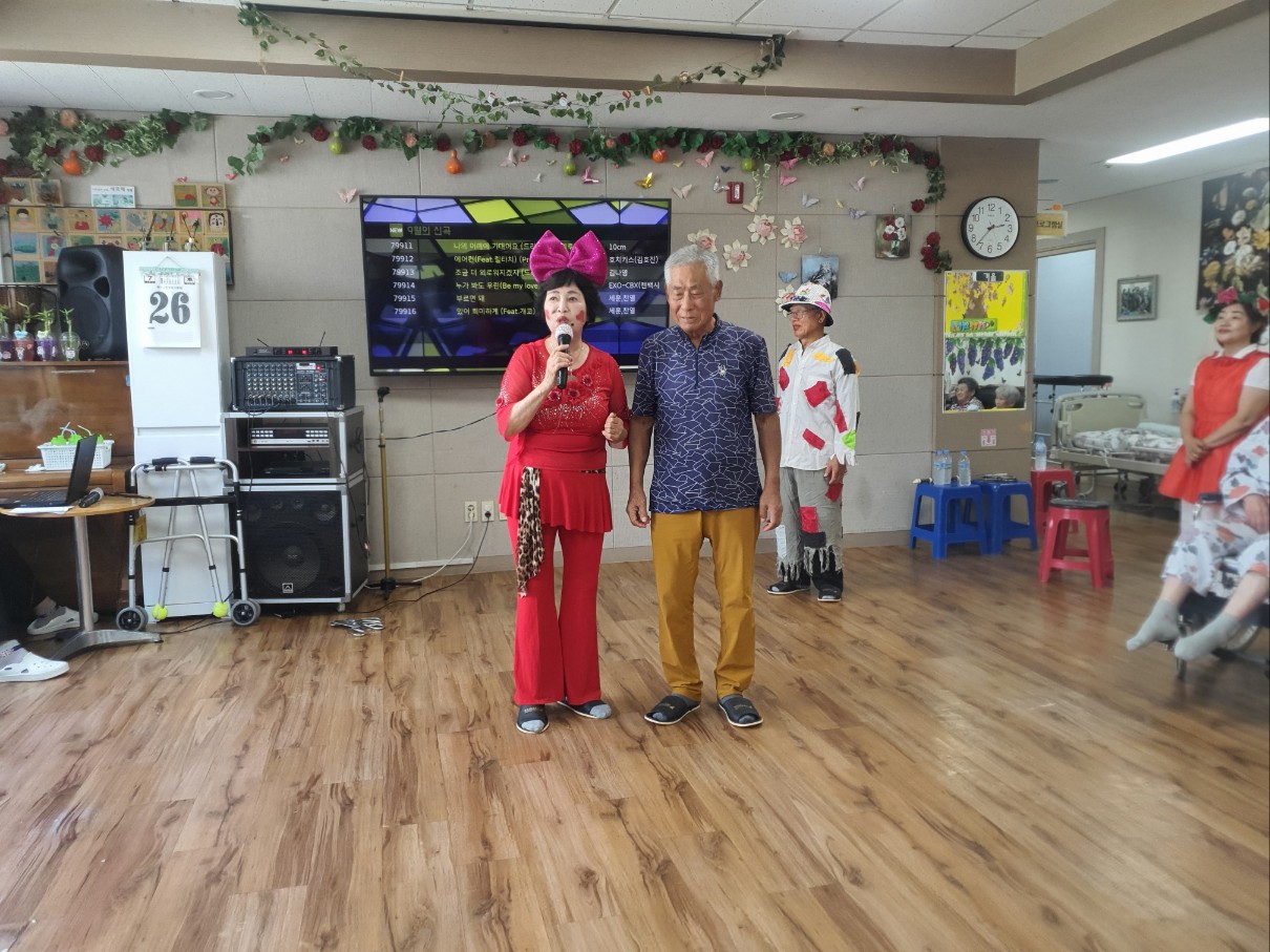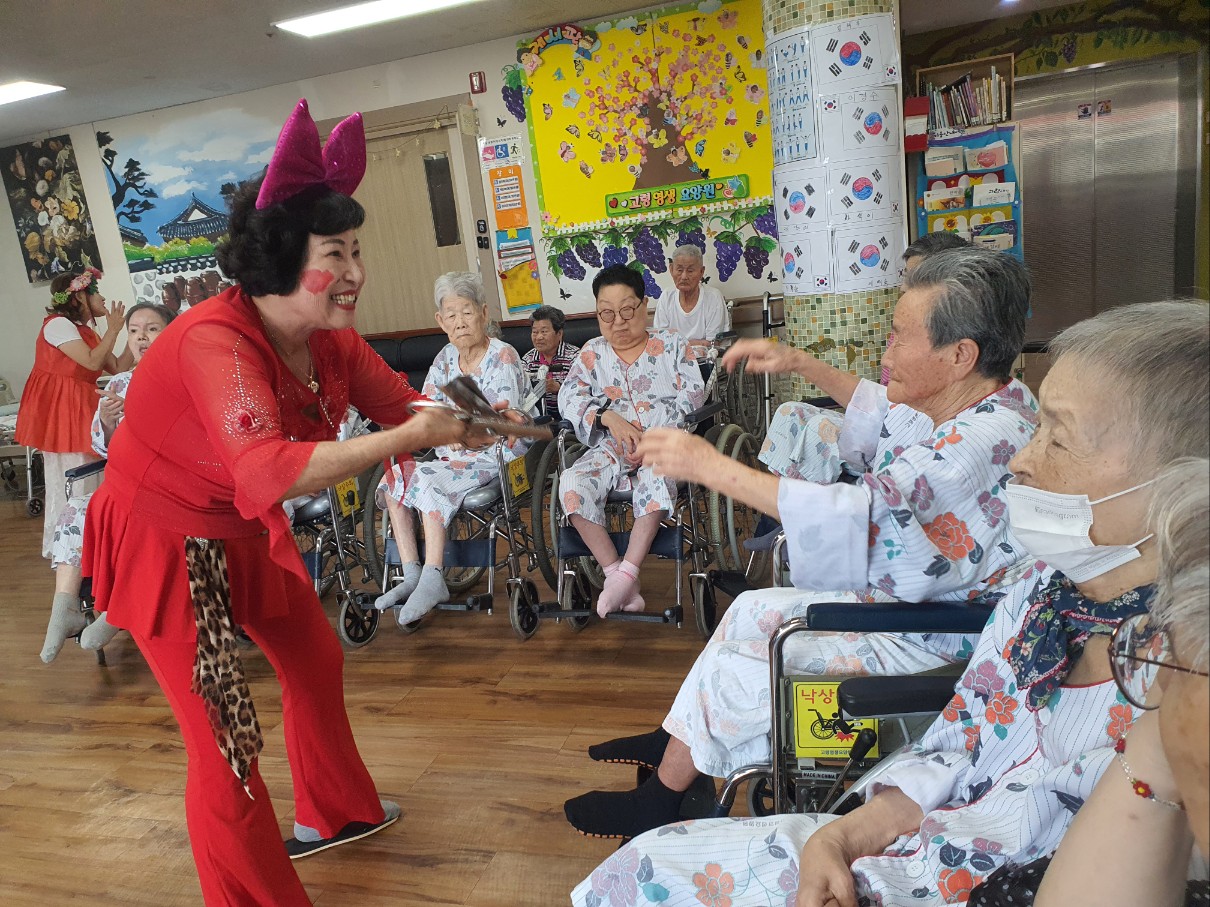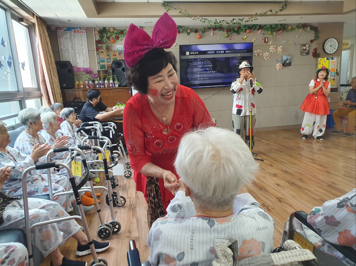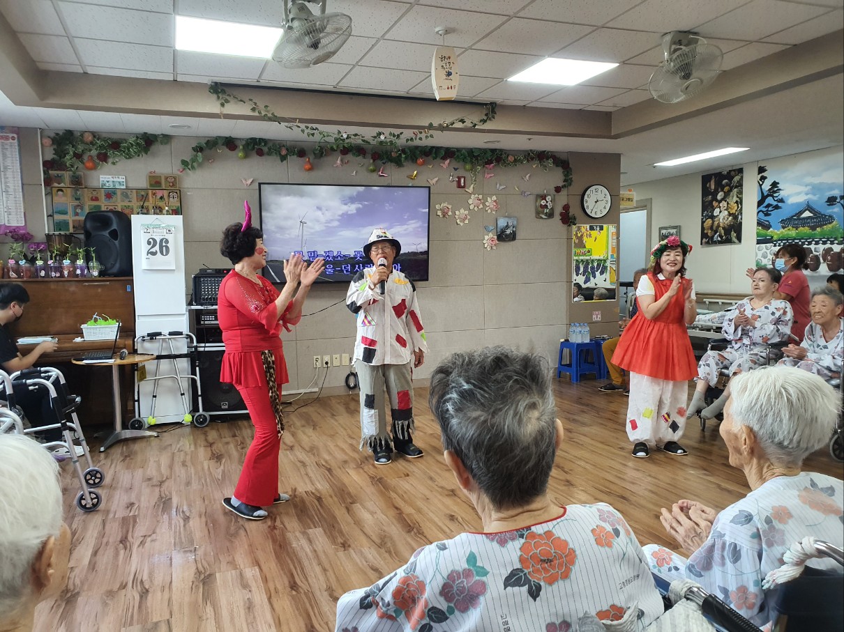 고령 이필여 단장과 삼대리 품바 공연단이 오셔서 어르신들에게 즐거운 시간을 주셨습니다 하모니카 연주, 노래 , 리코드 연주 품바춤 까지 그리고 애절한 강연등 즐거운 시간으로 어르신들에게 여가 있는 시간을 주셨습니다