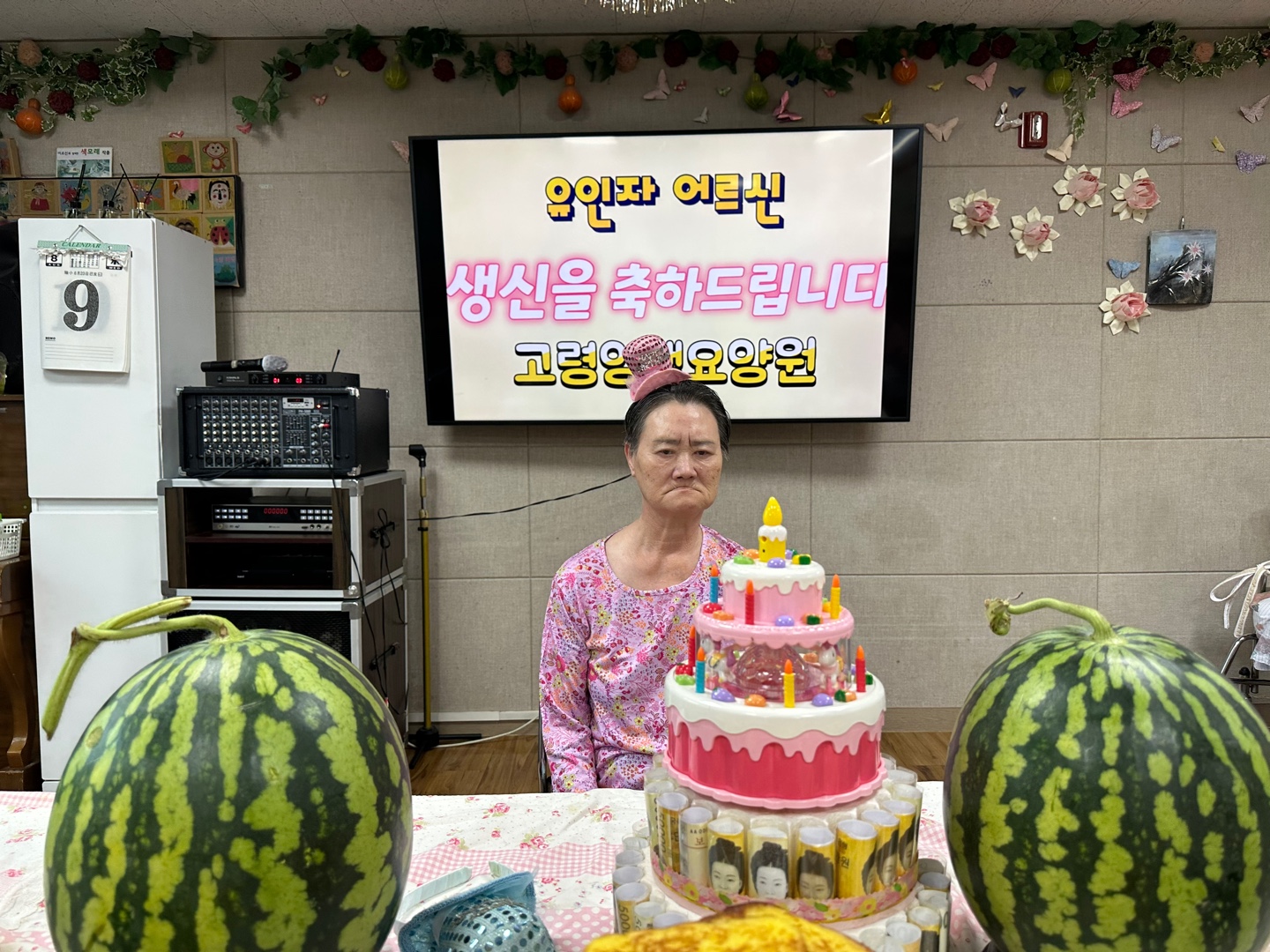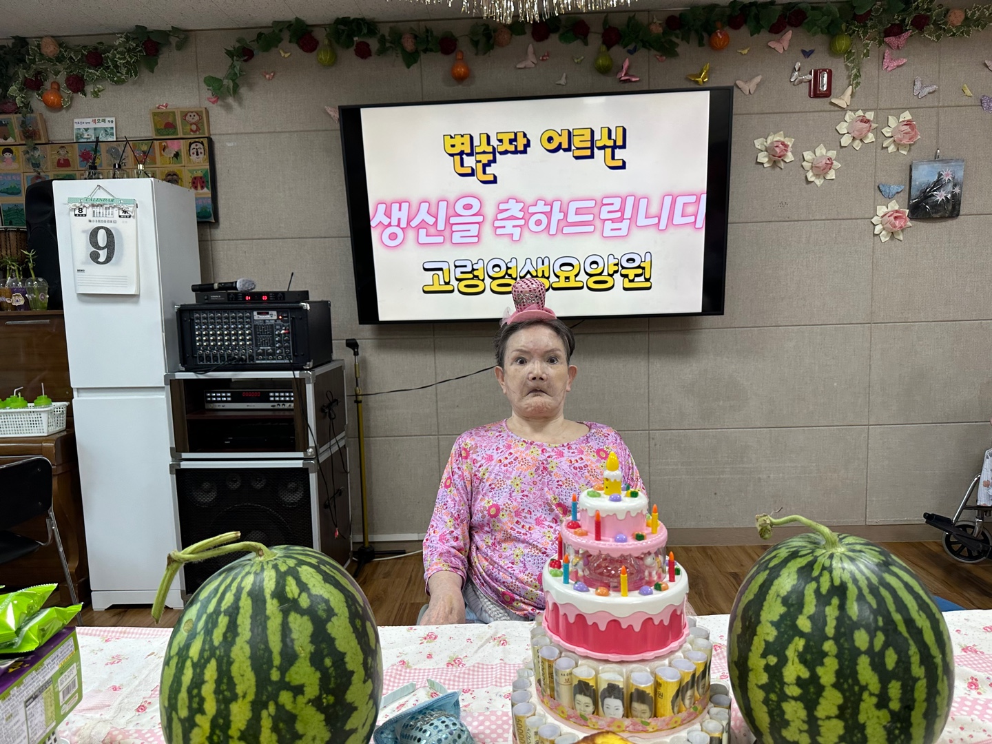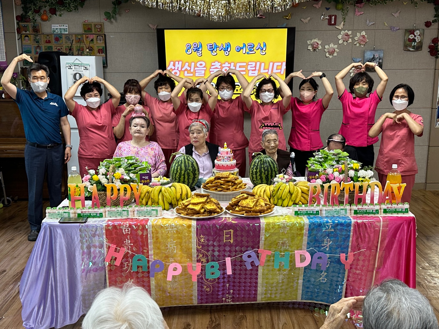 8월 무더위에 탄생하신 어르신들 생신잔치를 준비했습니다 9명의 어르신들 생신으로 티셔츠를 선물로 드리고 푸짐한 상차림으로 도움드렸습니다.