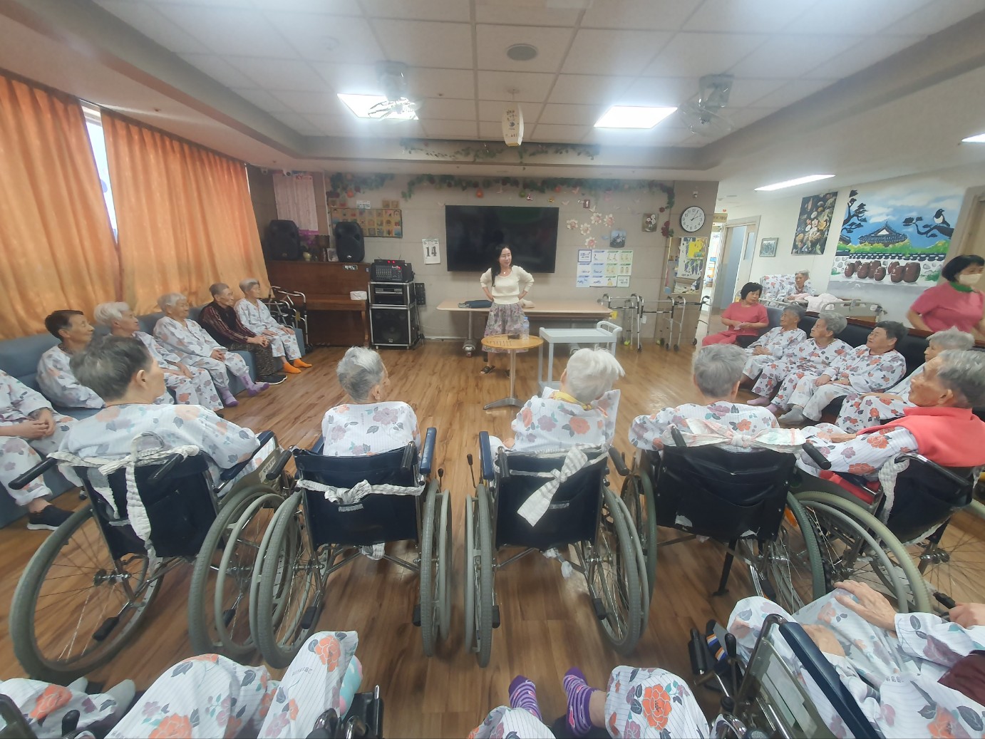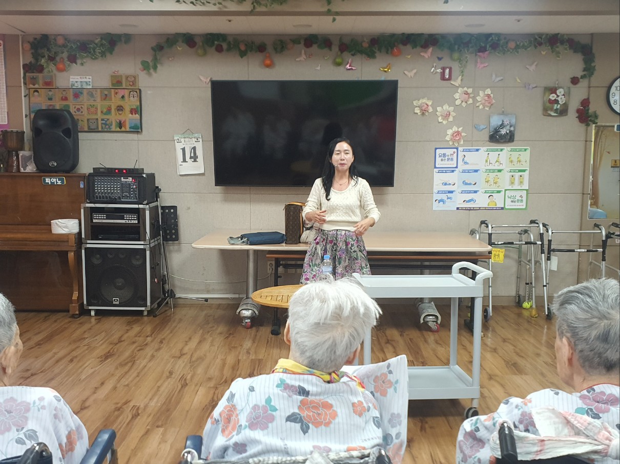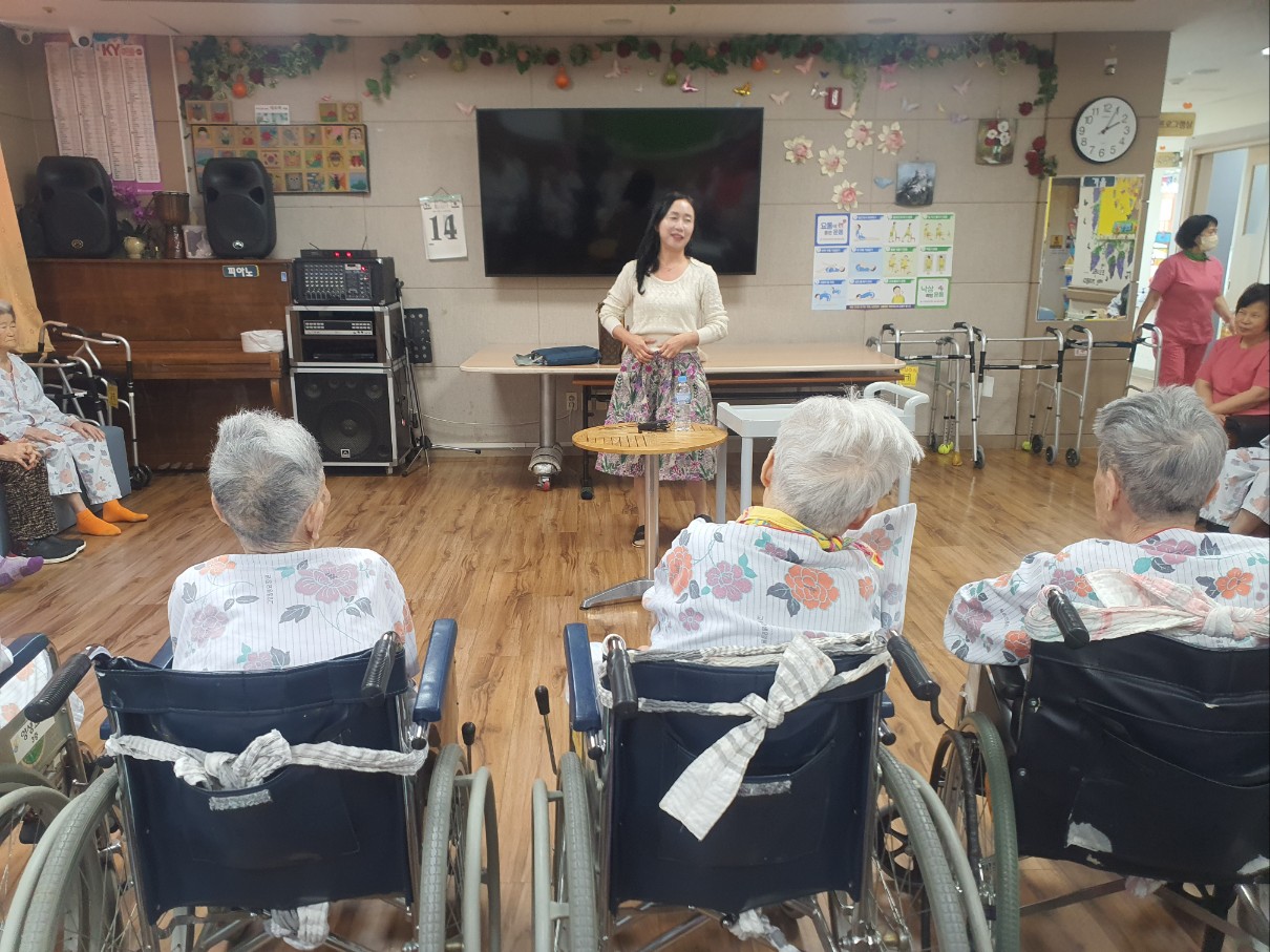 어르신들이 좋아하시는 동화구연 시간 성주에서 오시는 강사님 늘 뷰티 하셔서 어르신들이 좋아하십니다 재미있게 들려주시는 동화구연 신00 어르신은 선생님이 알려주신 손유희 노래도 정확하게 아시고 이야기를 듣는걸 좋아하셔요 할머니도 할아버지도 동화를 들으면 즐거워 하십니다
