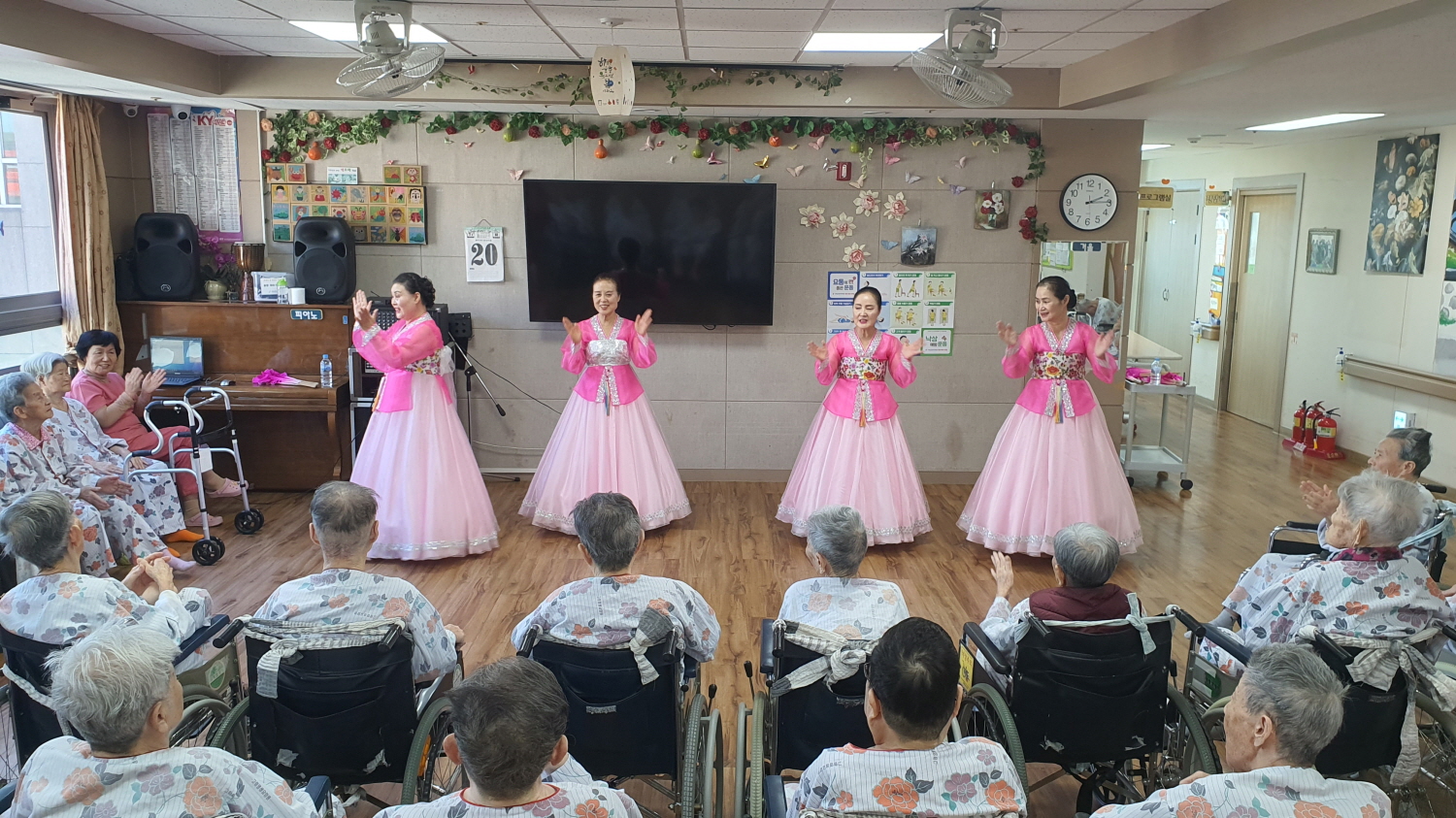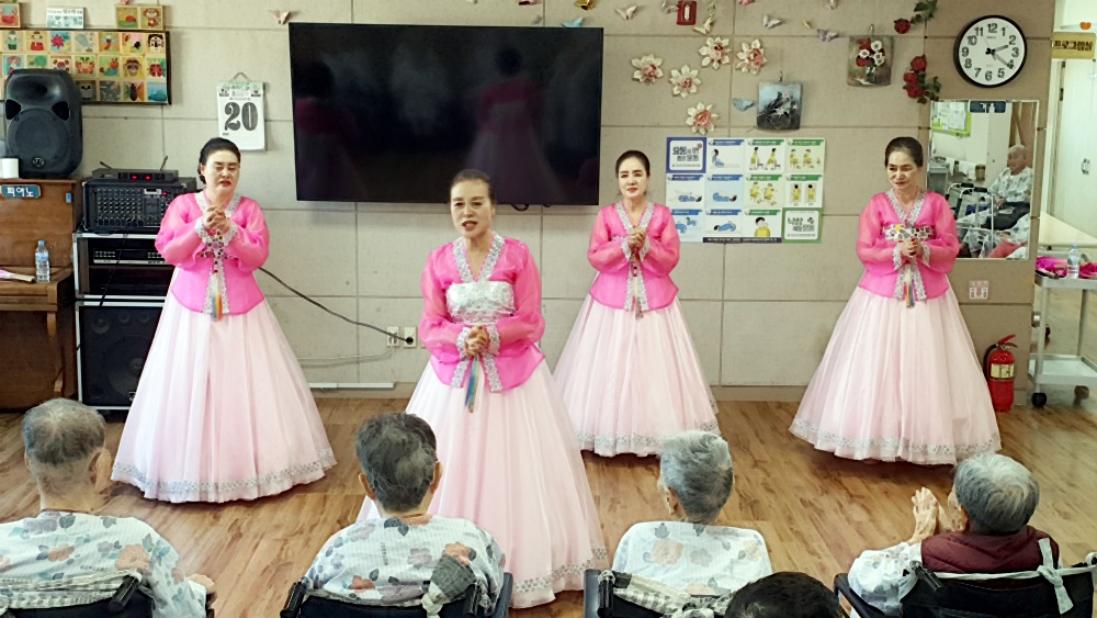 늘 어르신의 시선에서 율동과 댄스로 즐거움을 주시는 헤세드 찬양단 매달 셋째주 월요일 시간을 내셔서 봉사를 와 주심에 감사드립니다.