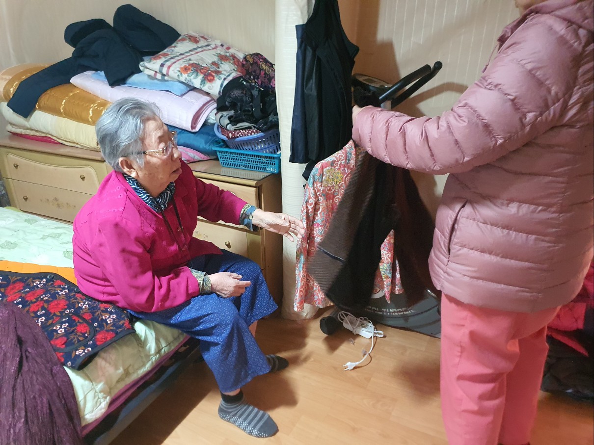 000 어르신 집에가셔서 짐을 챙겨 오고 싶은 욕구가 있으셔서 모시고 00군 00면 댁에 다녀오셨습니다 어르신 만족해 하셨고 필요한 물품과 겨울옷을 챙겨 오셨습니다 집에 있는 물건들이 걱정이 많이 되시고 전동오토바이를 팔아달라고 말씀하시고 집에 있는 늙은 호박도 챙겨오셔서 호박전을 구워 먹기로 함