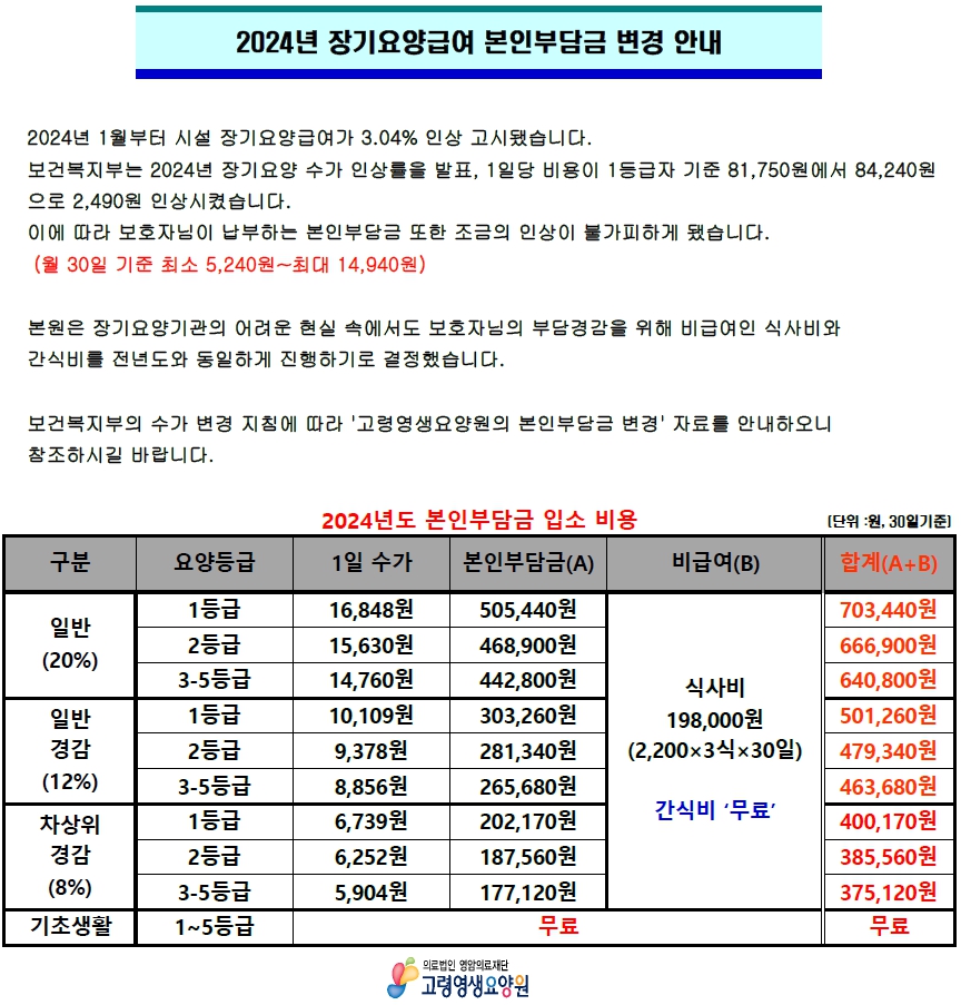 2024년도 본인부담금 변경을 안내합니다.