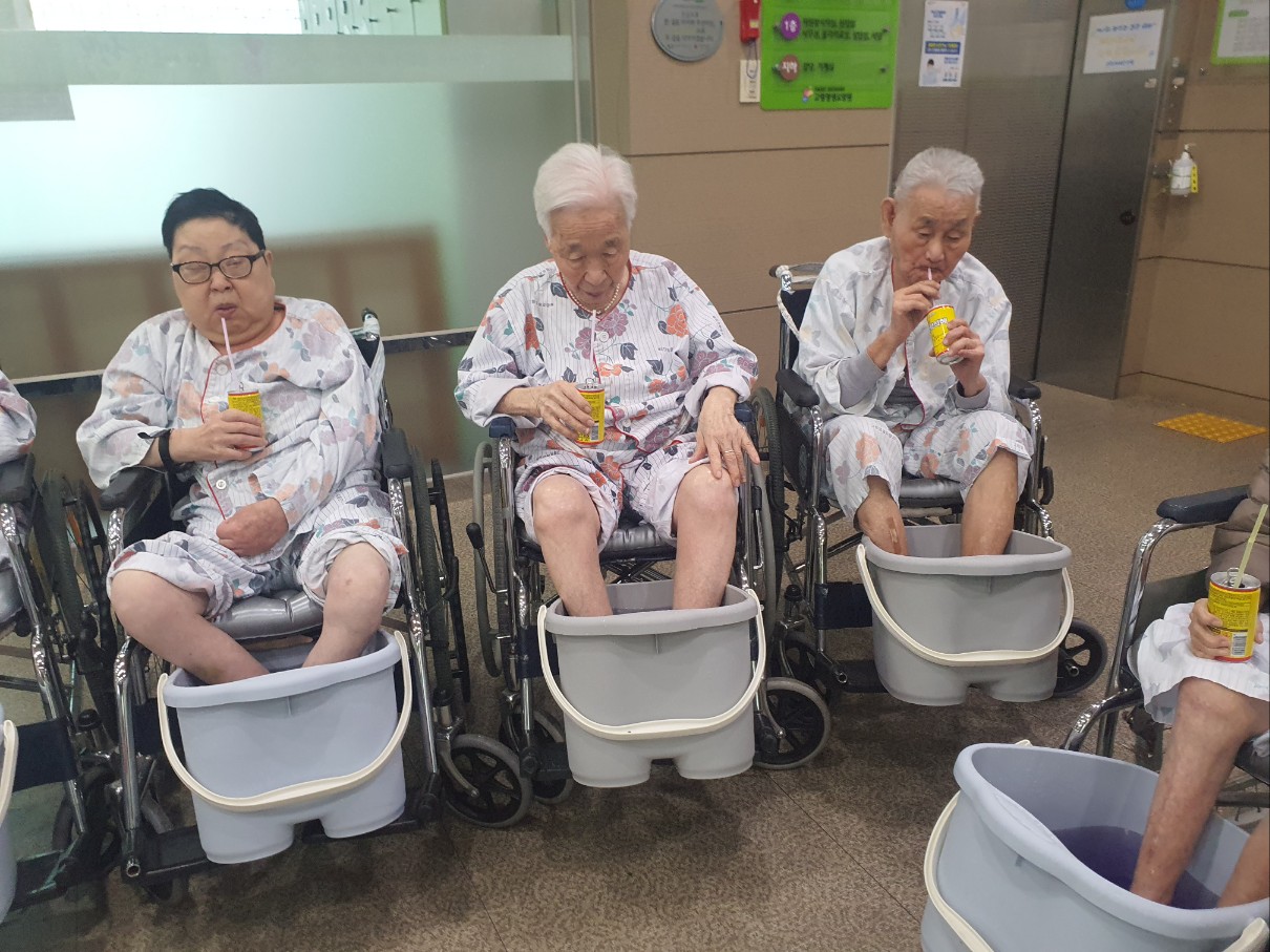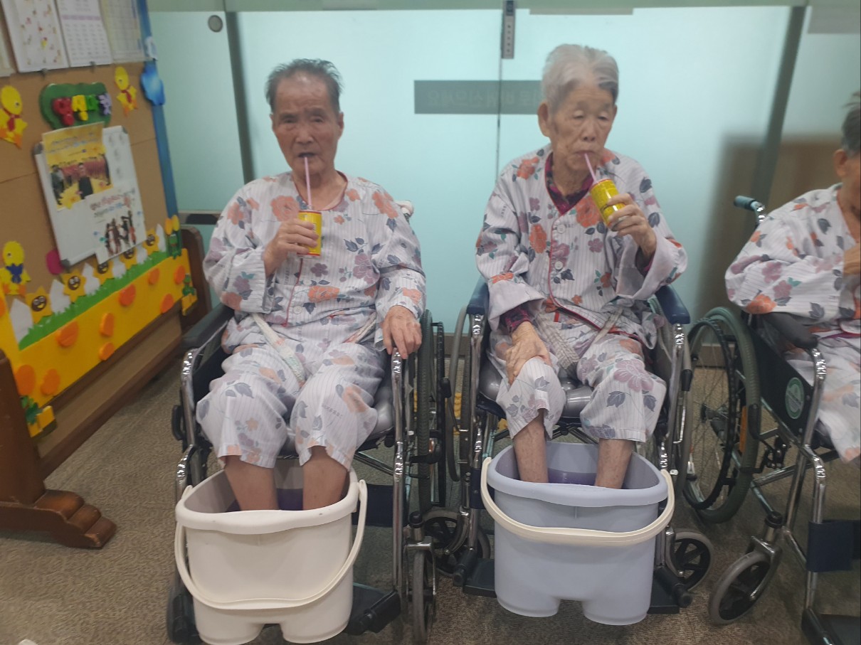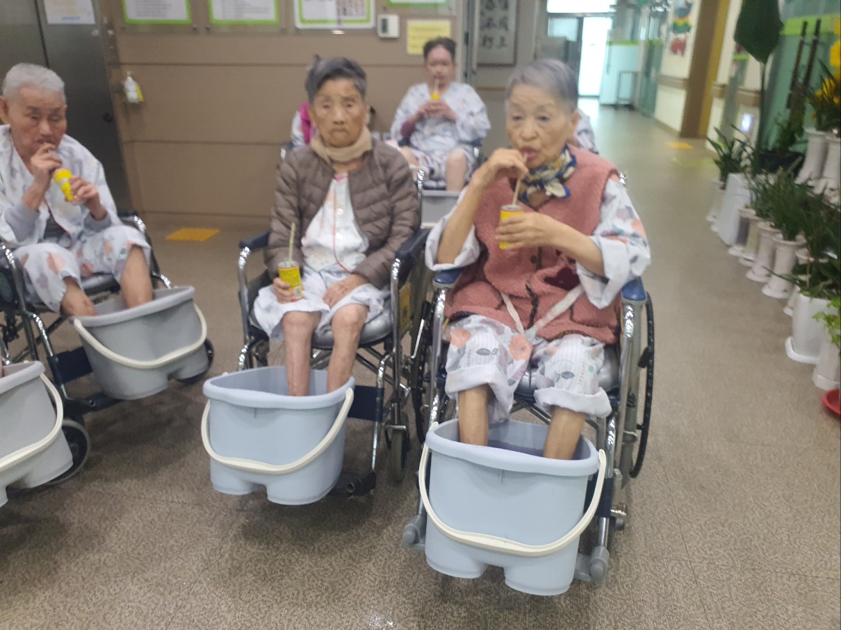 겨울비? 봄비가 내리는 날 기후 변화가 이상합니다 눈이 와야하는데 봄비라니 오른은 어르신들 따끈한 물에 발담그시는 날 족욕하시며~ 식혜도 드시고 즐거운 시간 보내셨어요