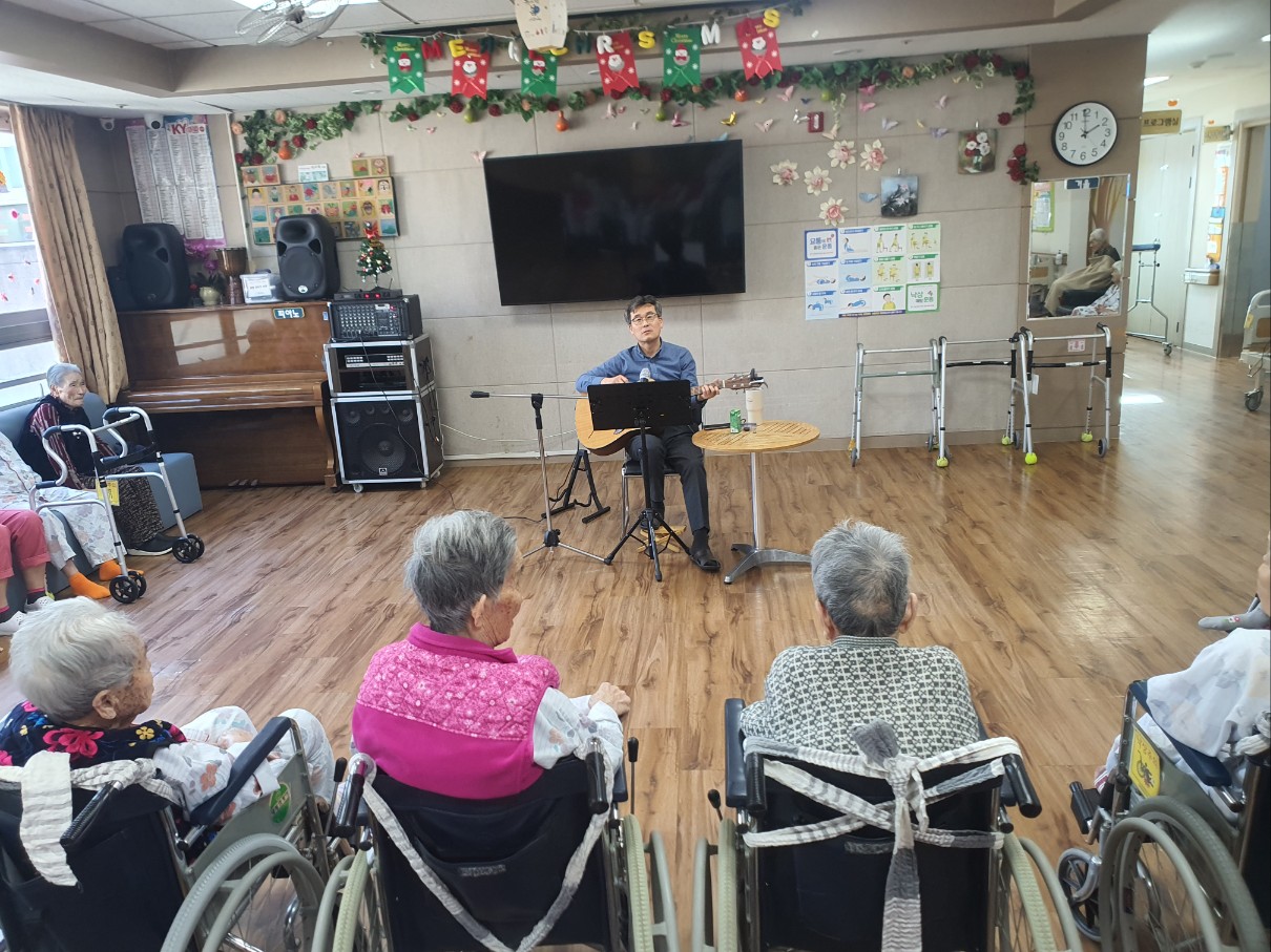 2023년 어떻게 보내셨나요 어르신들 다양한 활동으로 2023년 마지막 프로그램시간 원장님과 함께하는 통기타 시간 ~ 위로되는 시간~ 즐거운 노래 시간 2024년을 맞이하는 시간을 가졌습니다