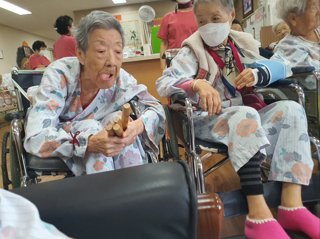 새해 인사를 하고 어르신들과 윷놀이 한판 했습니다 옛날 놀았던 추억을 생각하며 윷을 스스로 던지는 시간 본능이 깨어 나는 시간으로 미동도 하지 않던 어르신들도 윷을 툭툭 잘 던지셨어요 이긴 팀은 과자와 사탕, 진 팀도 과잘와 사탕으로 즐거운 간식도 챙겼습니다