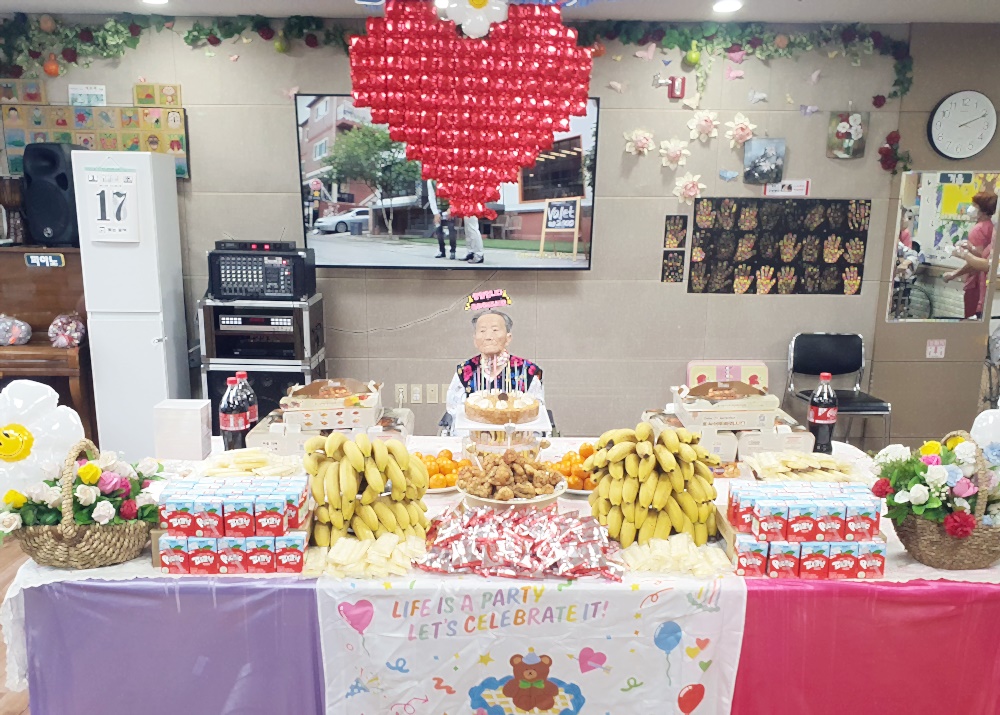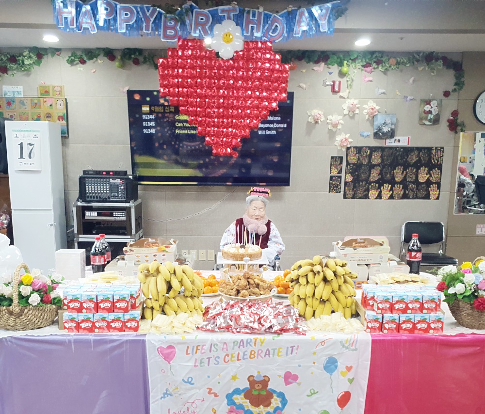 가족에게 영상을 받아 어르신에게 가족들을 영상으로 만나는 시간을 드렸으며 어르신에게 조끼와 덧버선을 선물로 제공드렸습니다. 이숙0 보호자님께서 케이크, 귤, 바나나를 보내주셨고 요양원에서는 통닭을 8세트 주문하고 과자 음료수 등 제공드려 도시락에 담아 어르신 한분한분 다 제공드렸으며 생일 어르신은 케이크도 함께 드렸습니다
