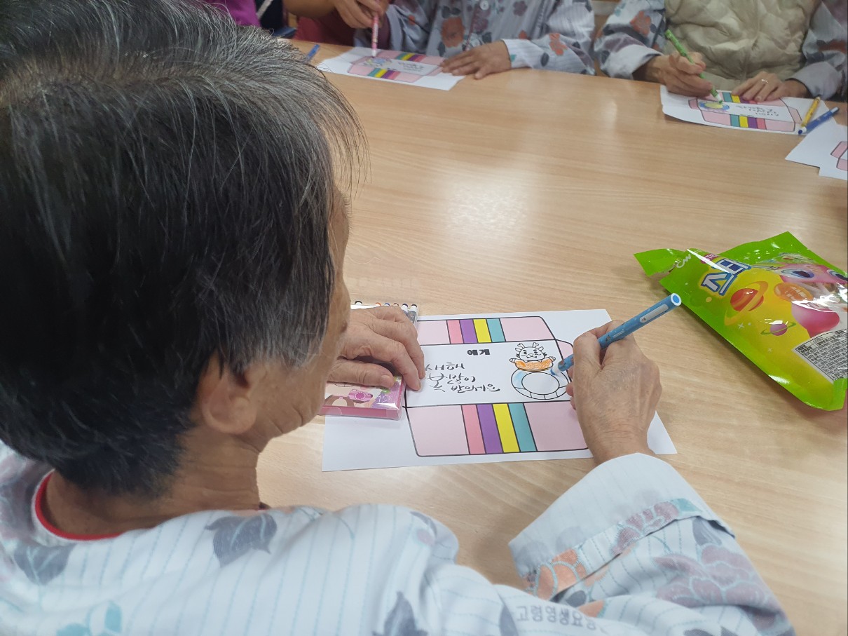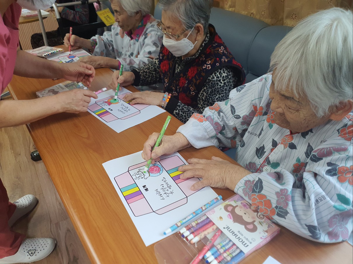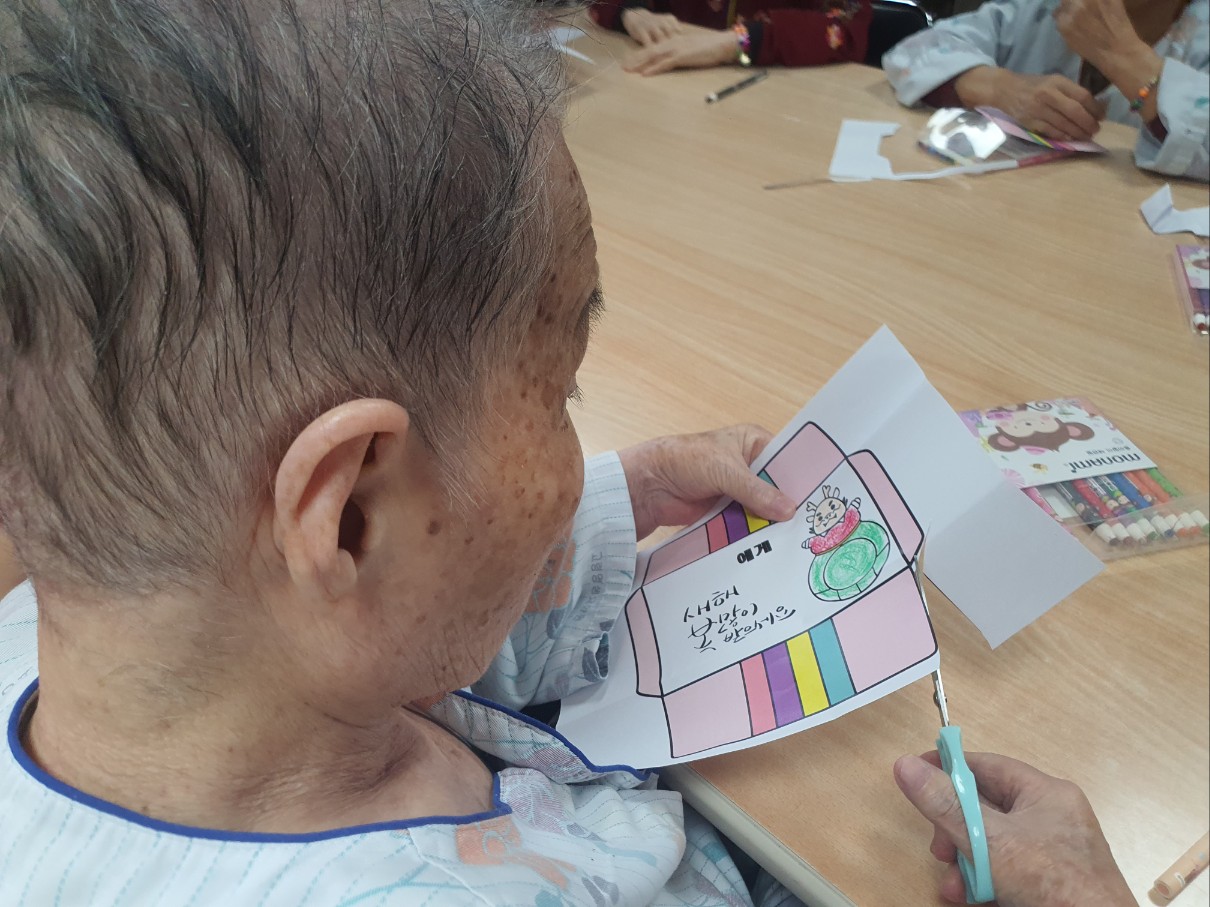 "야야 내 새해봉투 만들었다 용돈 많이 다오!" 설날을 맞이해 설날 용돈 봉투를 만드는 시간을 가졌습니다. 손주에게 용돈을 주고 싶은 어르신은 손주 수 만큼 만드셨습니다. 색칠도 꼼꼼하게 하시고 가위로 오려서 완성 후 이름도 적었습니다. 꼼꼼하게 잘 하셨어요 완성 후 사탕도 맛있게 드셨습니다 시장놀이에 사용하는 가짜돈을 드렸더니 다들 신나 하셨습니다 설마 명절날 손주에게 이 돈을 주는건 아니시겠죠? |