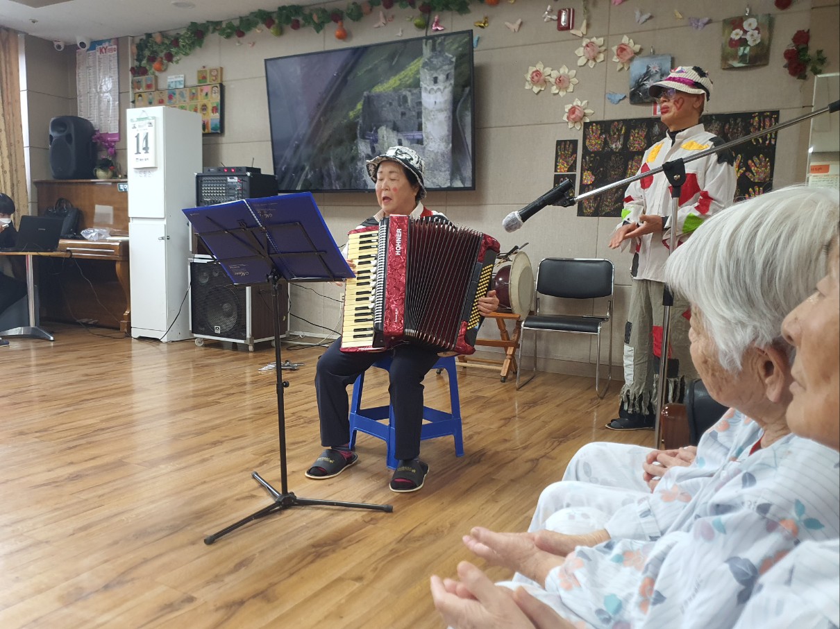아코디어, 하모니카, 웃음치료 노래로 흥겨운 시간을 주신 삼대리품바단은 고령군 평생학습으로 배운 솜씨를 지역에 봉사하고 있는 단체로 평균연령 70세로 노노 케어를 하고 계십니다. 멋진 봉사단 어르신을 위해 뻥튀기도 사오시고 늘 감사합니다.