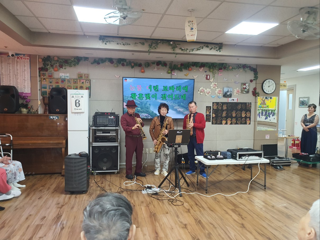| 멋진 노래와 색소폰 연주 그리고 춤으로 어르신들에게 즐거운 시간을 주셨습니다 늘 감사합니다 | |||