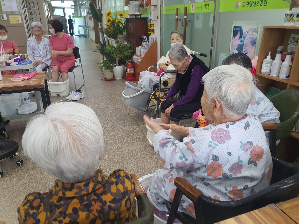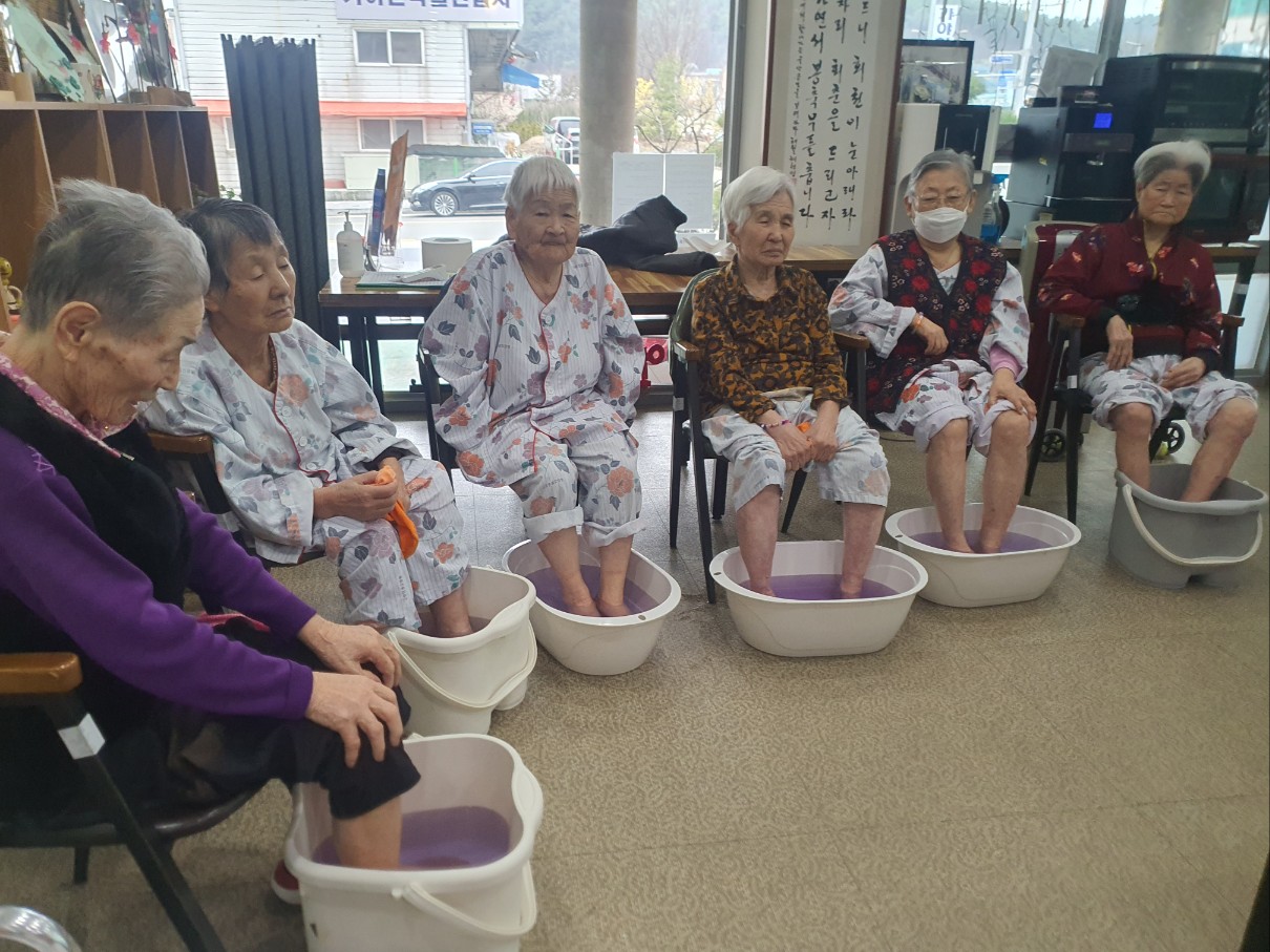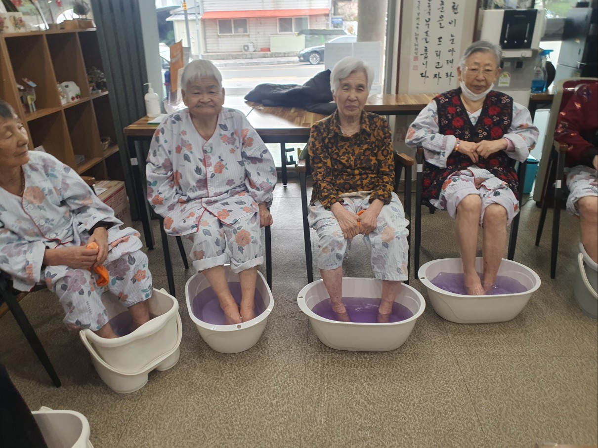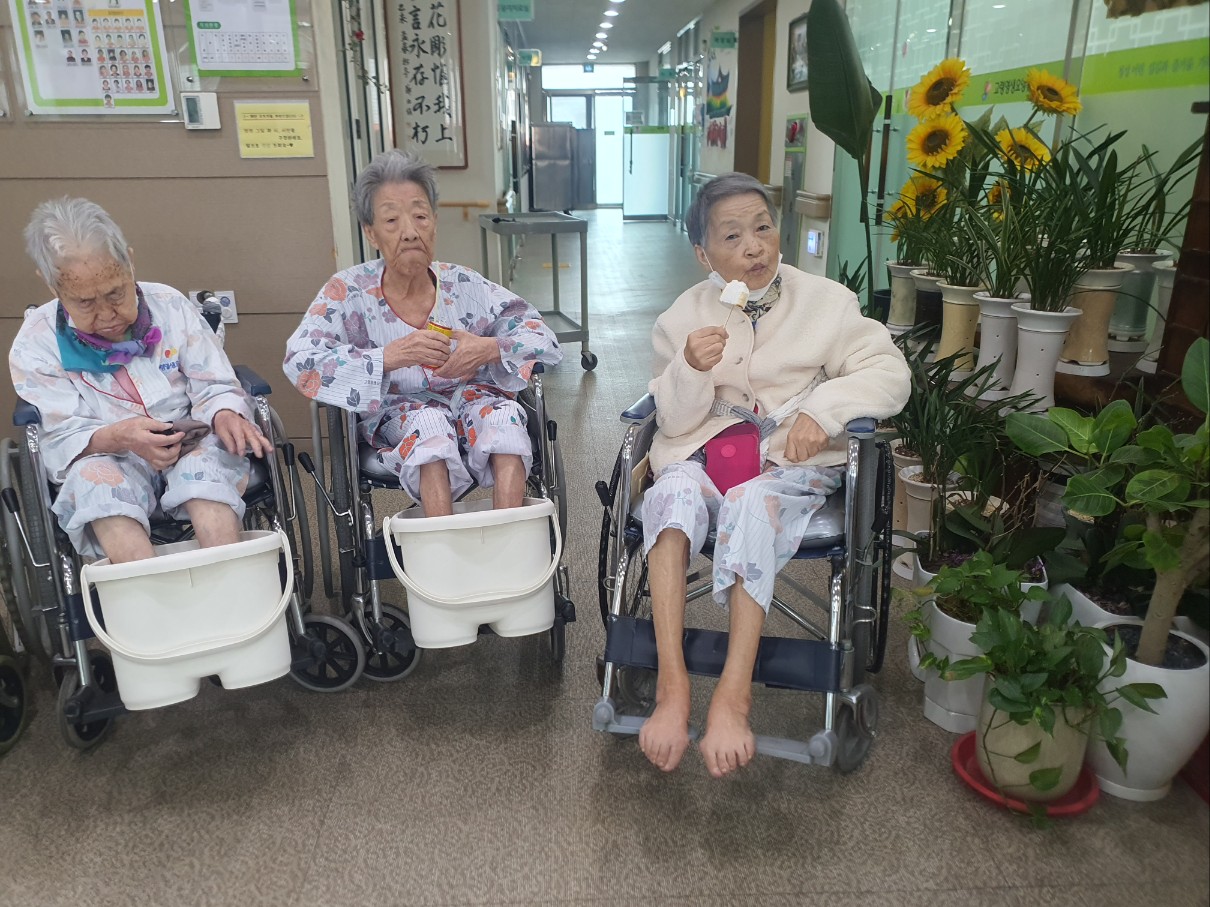 어르신 호흥도 좋으신 프로그램 족욕프로그램 시간입니다 아로마오일과 입욕제(소금)을 도움드리고 시원한 풋크림을 제공드렸습니다 족욕을 통해 어르신 혈액순환을 돕고 면역증진에 도움을 주고,족욕으로 어르신들의 발케어와 온몸의 혈액순환을 도와 잠을 잘 주무시도록 계획드렸는데 좋은 반응으로 매달 도움드립니다 식혜와 함께 제공드리니 좋아하셨습니다 오늘은 마시멜로도 맛있게 드시면서 족욕을 하셨어요