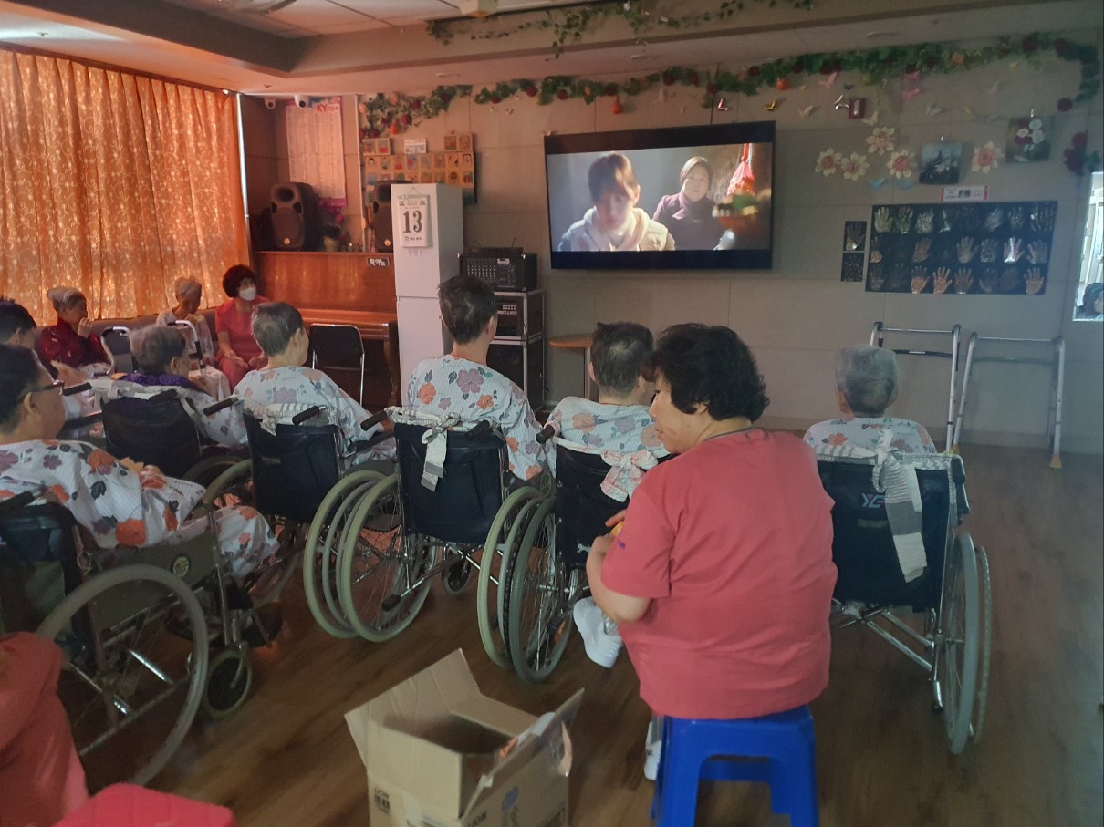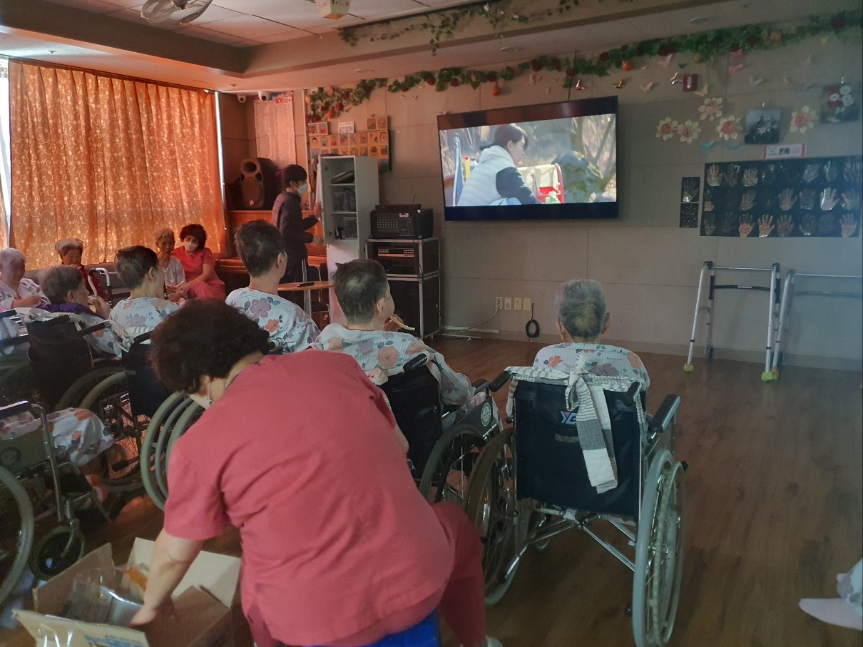 엄마와 딸의 이야기를 담은 잔잔한 에세이 어르신들 맛있는 음식을 만드는 모습과 딸과 엄마의 아름다운 마음을 보고 즐거워 하심 삼대리품바에서 전해주신 뻥튀기를 먹으며 영화 즐겁게 보셨습니다