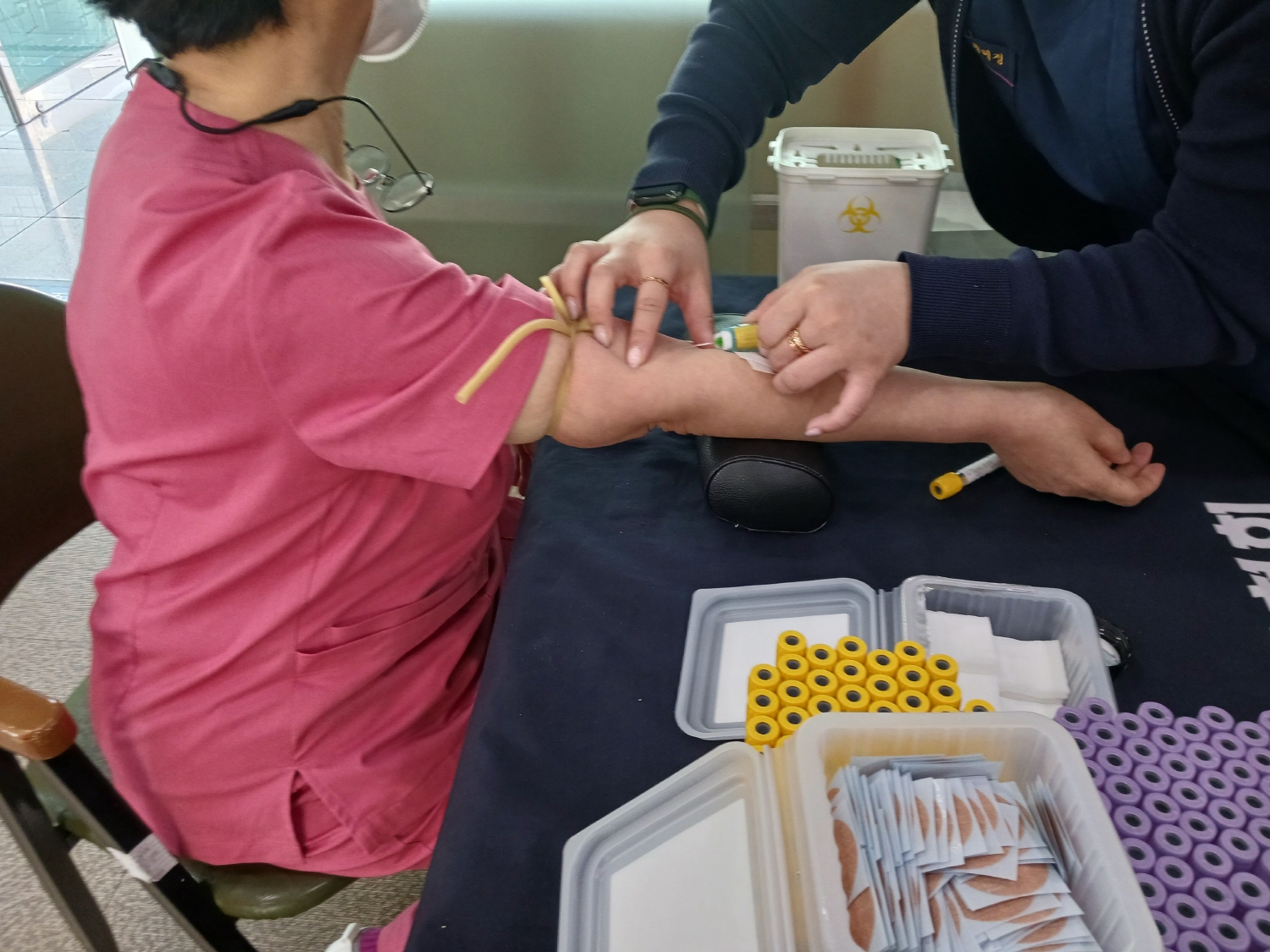 산업안전보건법에 따라 야간 근무자 대상으로 실시하는 특수건강검진이 실시됐습니다. 이는 근로자의 직업성 질환으로 부터 근로자들의 건강을 유지하고 보호하기 위한 사업주 비용부담의 주기적인 건강검진입니다. ' 본원은 입사 전 1차 특수건강검진과 배치후 6개월내 검진을 실시하고 있습니다. 이번 특수건강검진은 본 법인의 고령영생병원과 고령군립요양병원과 더불어 요양원 등 대상자 70명에 한해 3월18일과 20일 양일간에 걸쳐 대한산업보건협회 주관의 출장 통해 이루어졌습니다.