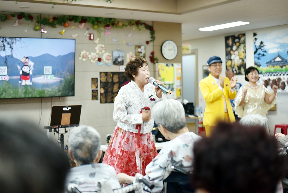 어르신들에게 여가의 시간을 주시는 밝은 사람들의 모임 의상 부터 남다른 멋진 공연~~ 멋진 색소폰 연주와 장구 노래로 흥겨운 시간을 주셨습다