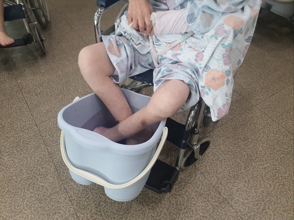 어르신 호흥도 좋으신 프로그램 족욕프로그램 시간입니다 아로마오일과 입욕제(소금)을 도움드리고 시원한 풋크림을 제공드렸습니다 족욕을 통해 어르신 혈액순환을 돕고 면역증진에 도움을 주고,족욕으로 어르신들의 발케어와 온몸의 혈액순환을 도와 잠을 잘 주무시도록 계획드렸는데 좋은 반응으로 매달 도움드립니다 식혜와 함께 제공드리니 좋아하심 간식도 함께 챙겨드림