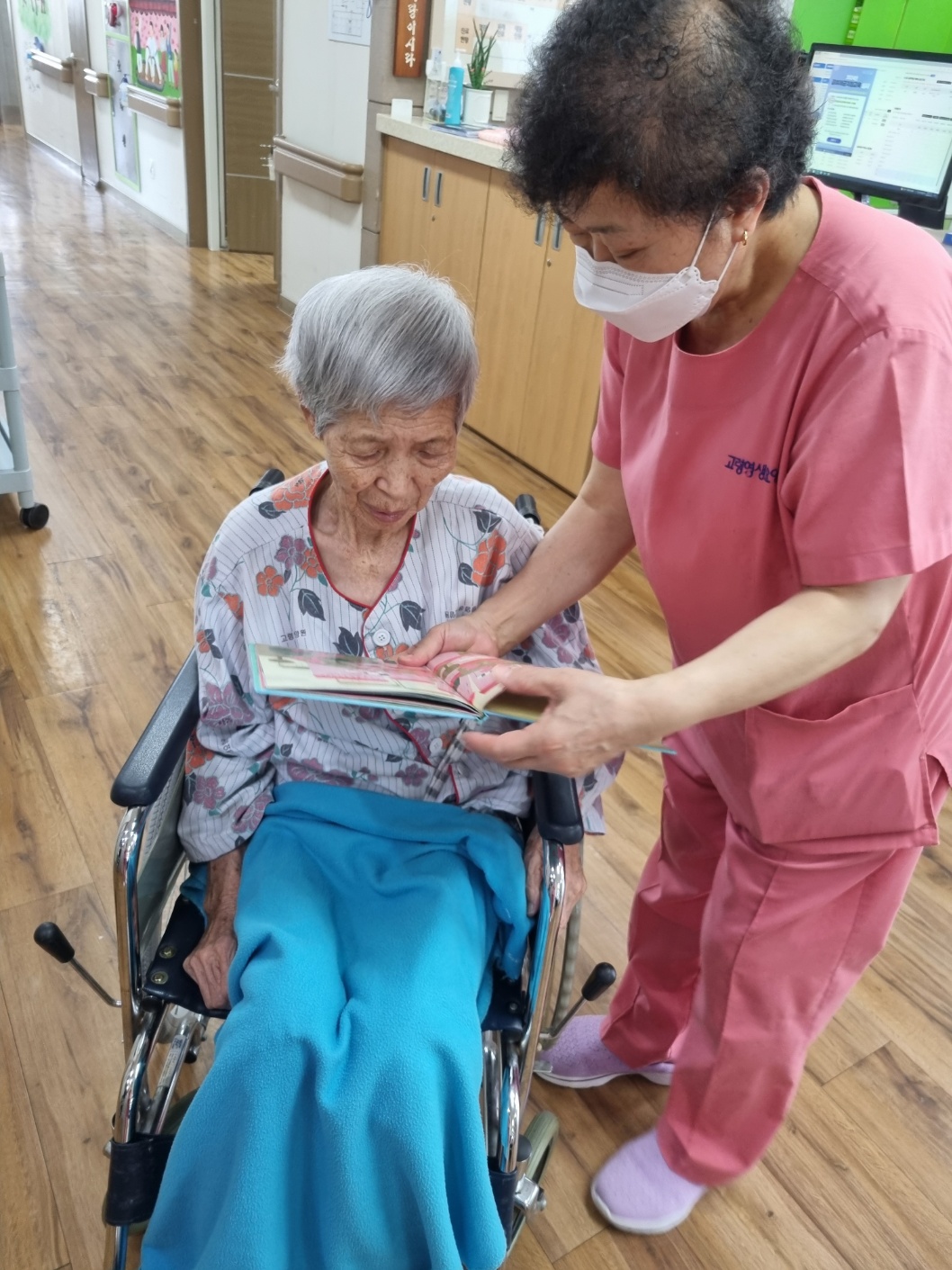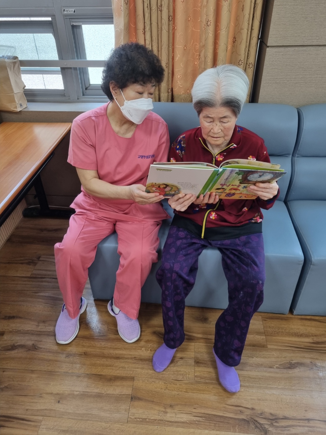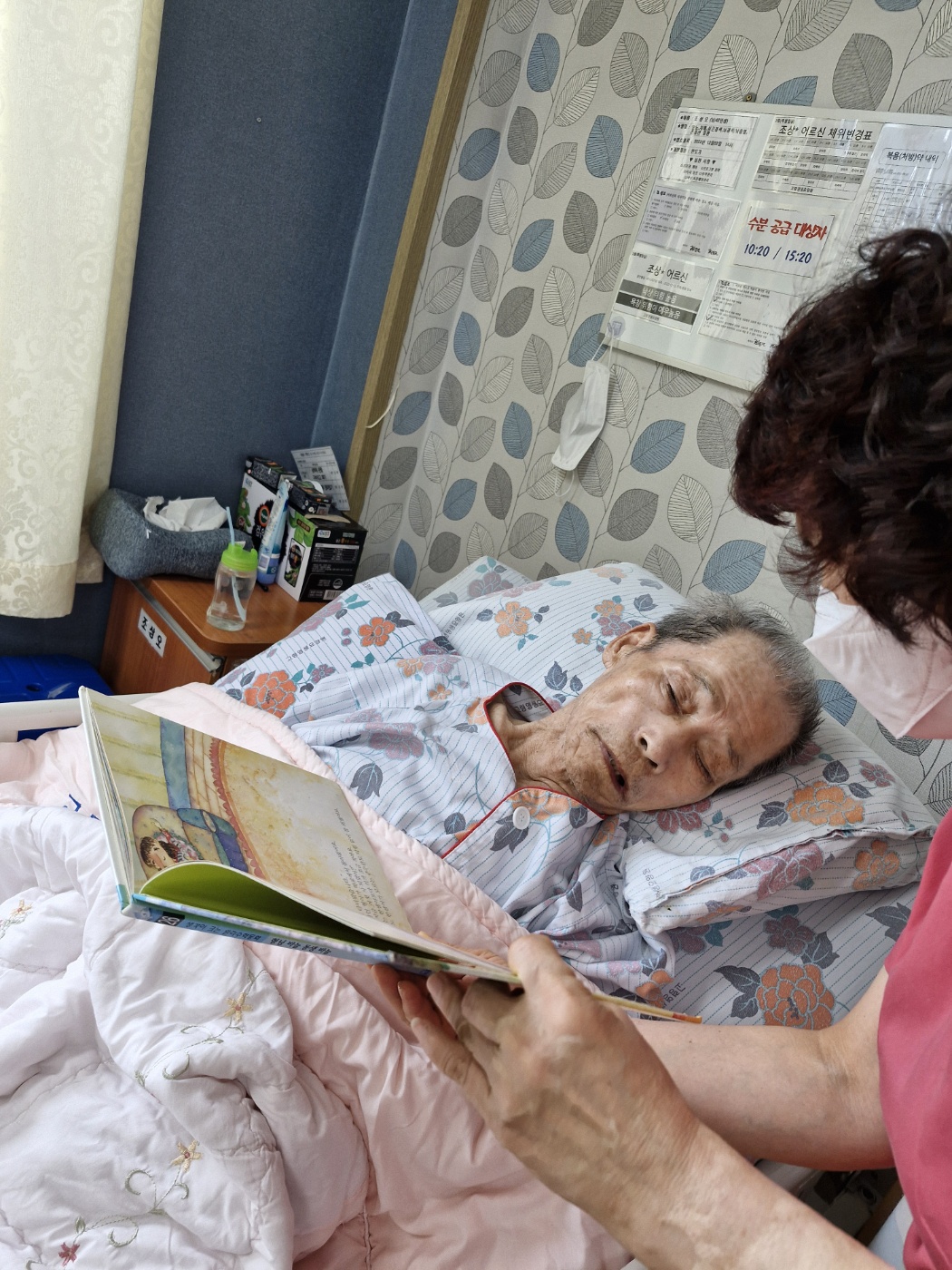 목요일과 금요일은 어르신들 개인 개인에게 책 읽어드리는 시간입니다 손을 잡아 드리고 이야기 나누며 교감하는 시간~