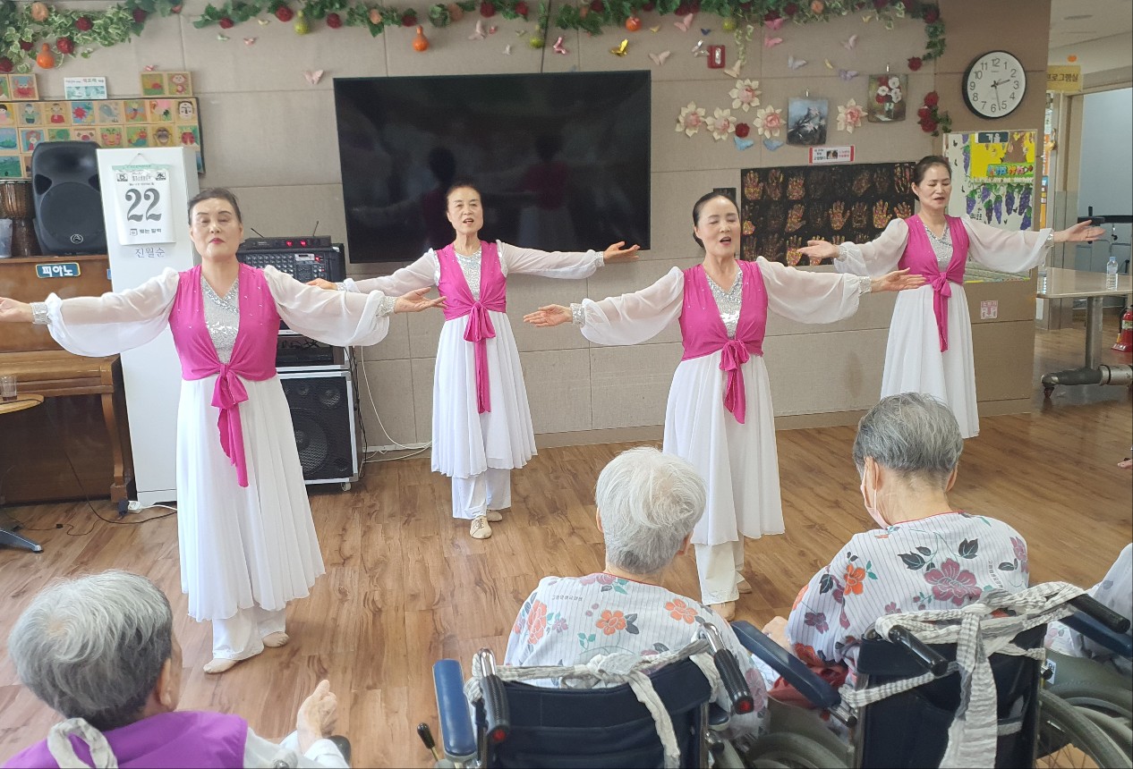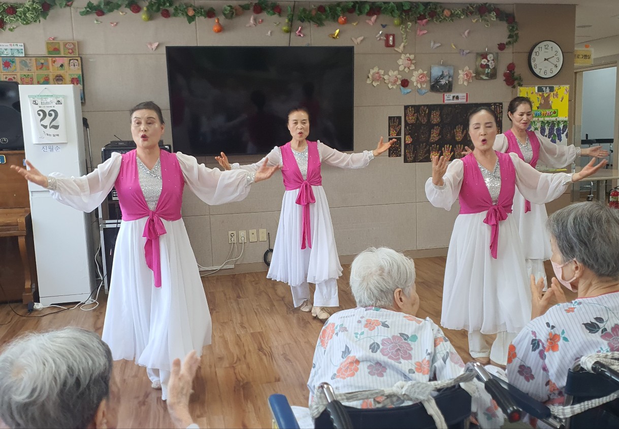 어르신과 인지 쑥쑥 즐거운 시간 되셨습니다 공연을 구상해 오셔서 즐거움을 주고 레크레이션을 따라하도록 해 주셔서 어르신 인지력도 쑥쑥 올려 주시고 계십니다