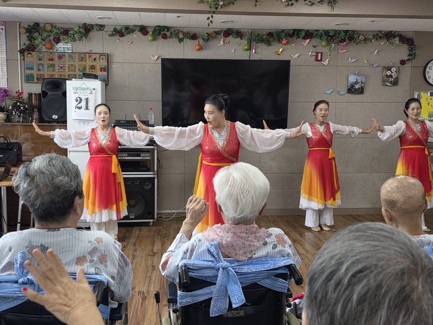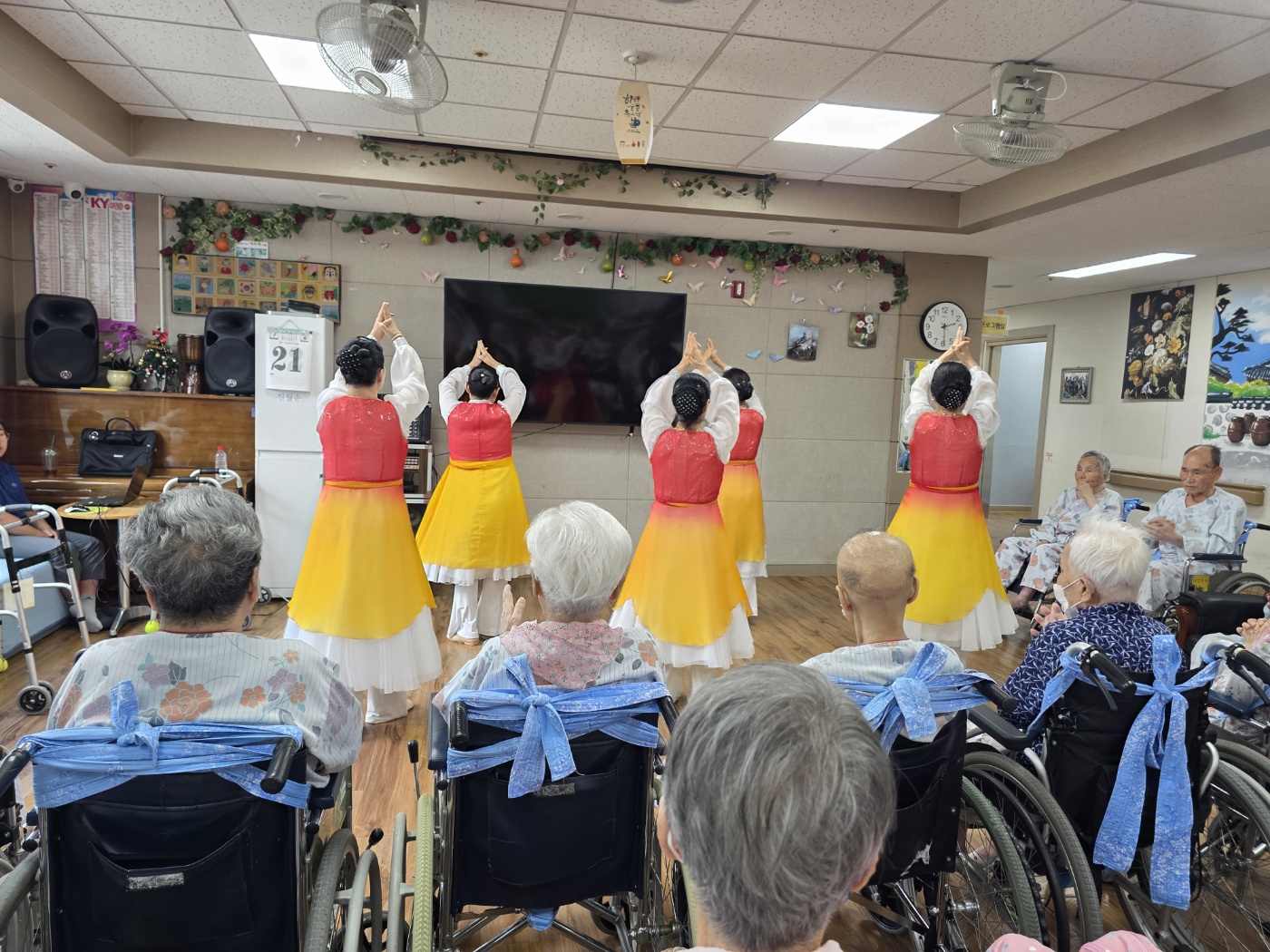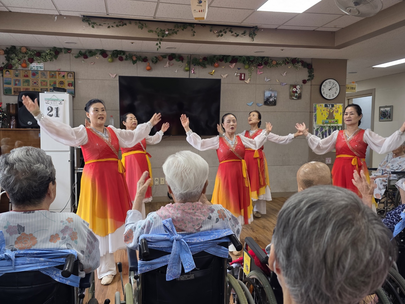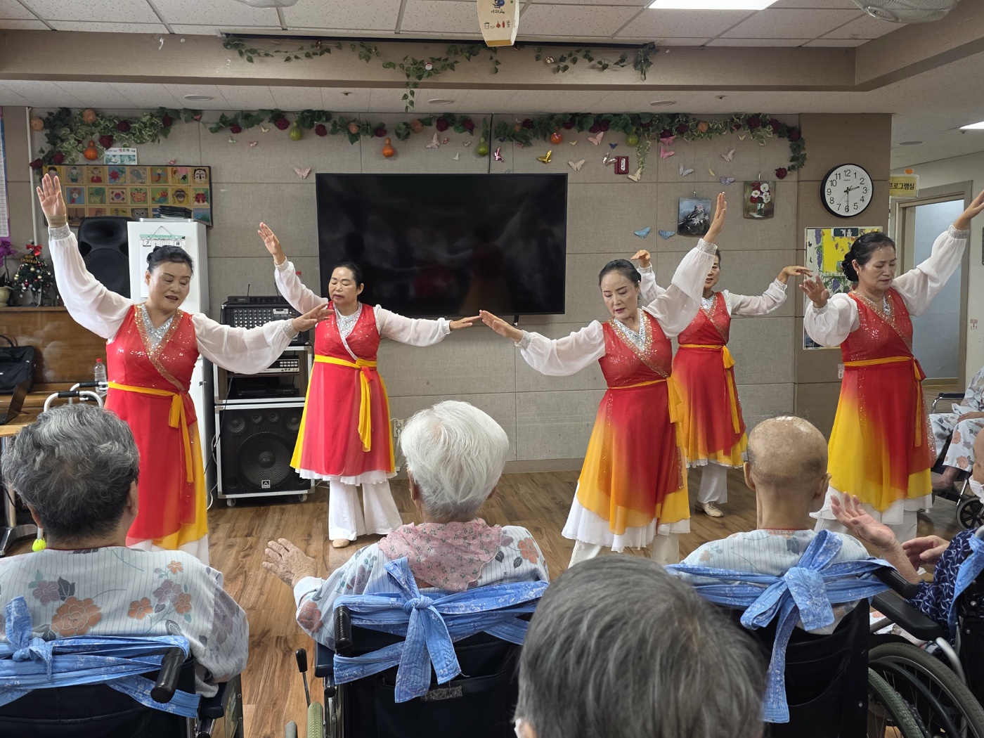 | 헤세드찬양단은 매월 정기적으로 요양원을 방문하여 어르신들을 위한 따뜻한 찬양과 즐거운 율동, 손유희 프로그램을 진행해주고 있습니다. 오늘도 어르신들을 위해 아름다운 복장을 갖추고 방문해주셨으며, 어르신들의 눈과 귀를 즐겁게 해주는 뜻깊은 시간을 마련해주셨습니다. | |||