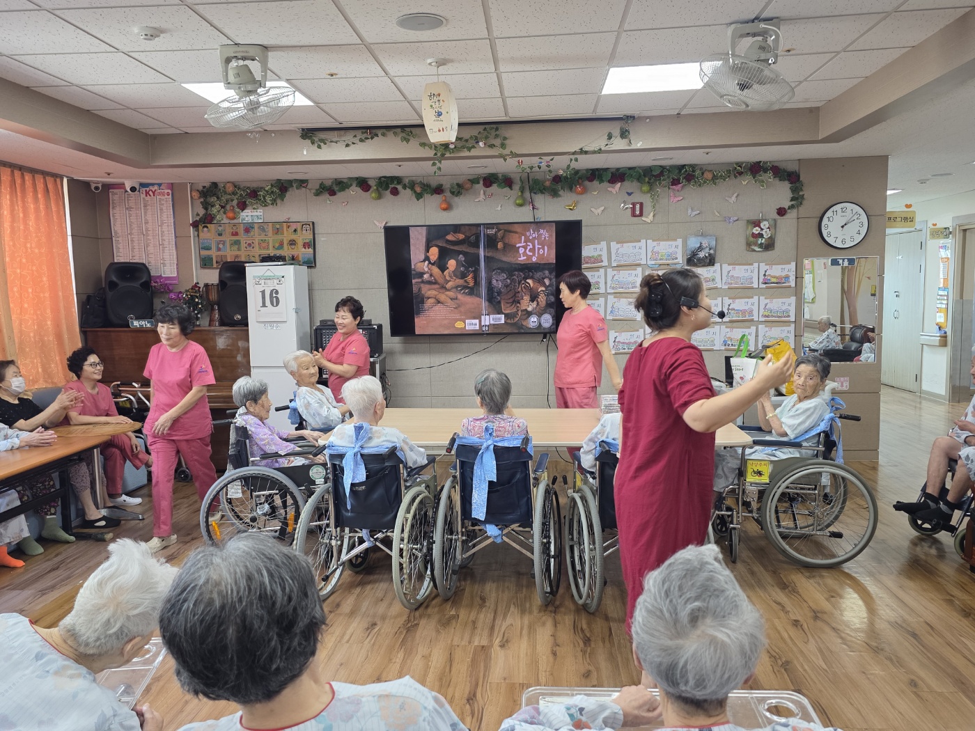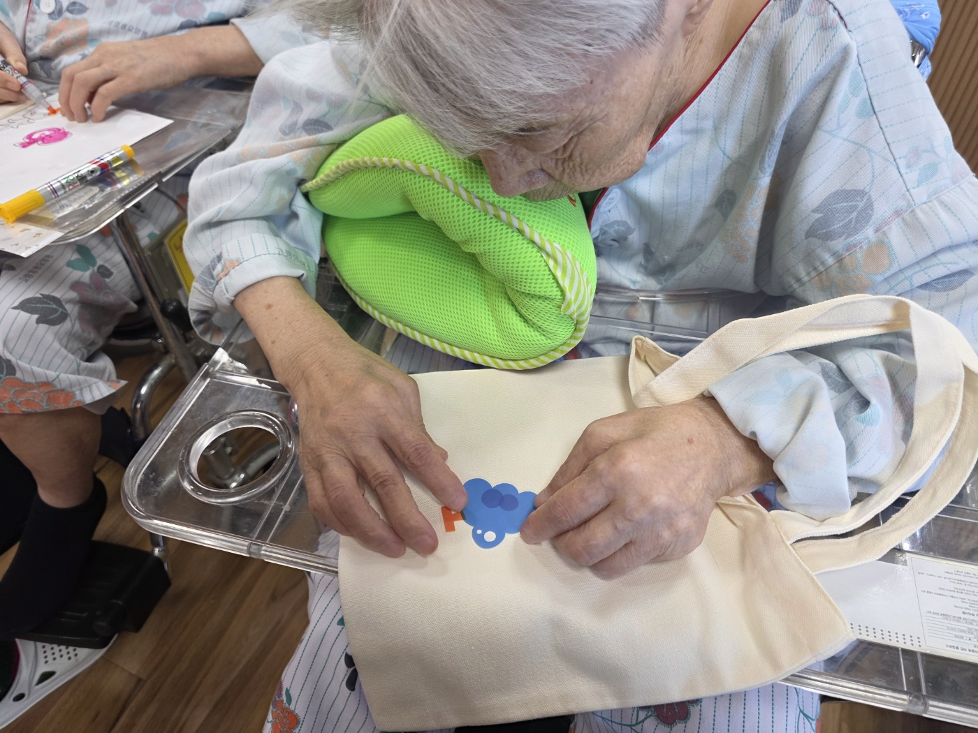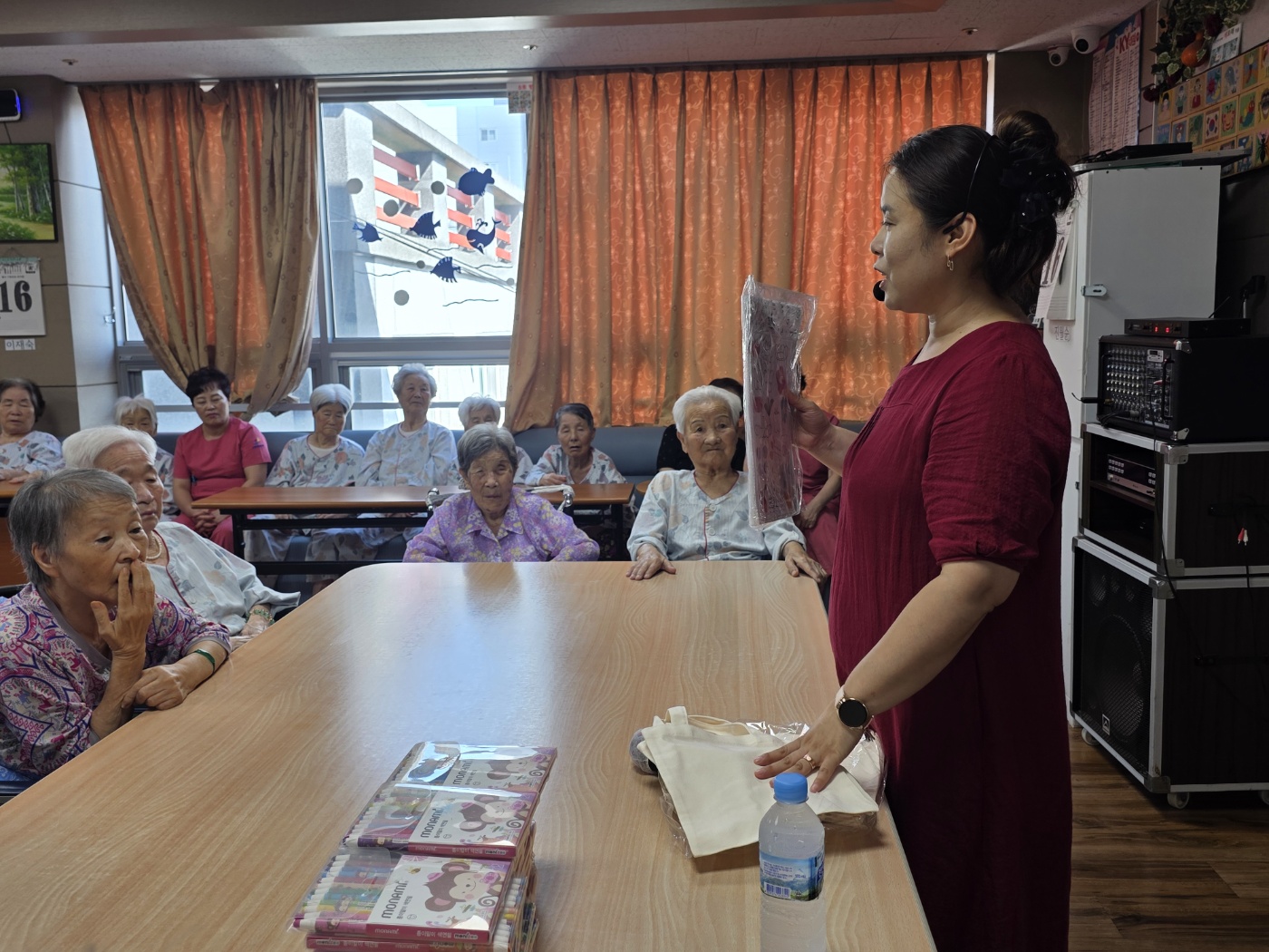| 고령도서관 동화구연 시간에는 「호랑이 절구」 책을 재미있게 읽어주셔서 어르신들이 집중하며 즐겁게 참여하셨습니다. 이어서 에코백 만들기 활동을 진행하며 색칠을 고운 색으로 꾸미고, 가방에 직접 이름을 적어 시장 나들이 준비까지 마치셨습니다. 독서와 체험이 어우러진 활동으로 어르신들께 큰 만족과 성취감을 드린 뜻깊은 시간이었습니다. | |||