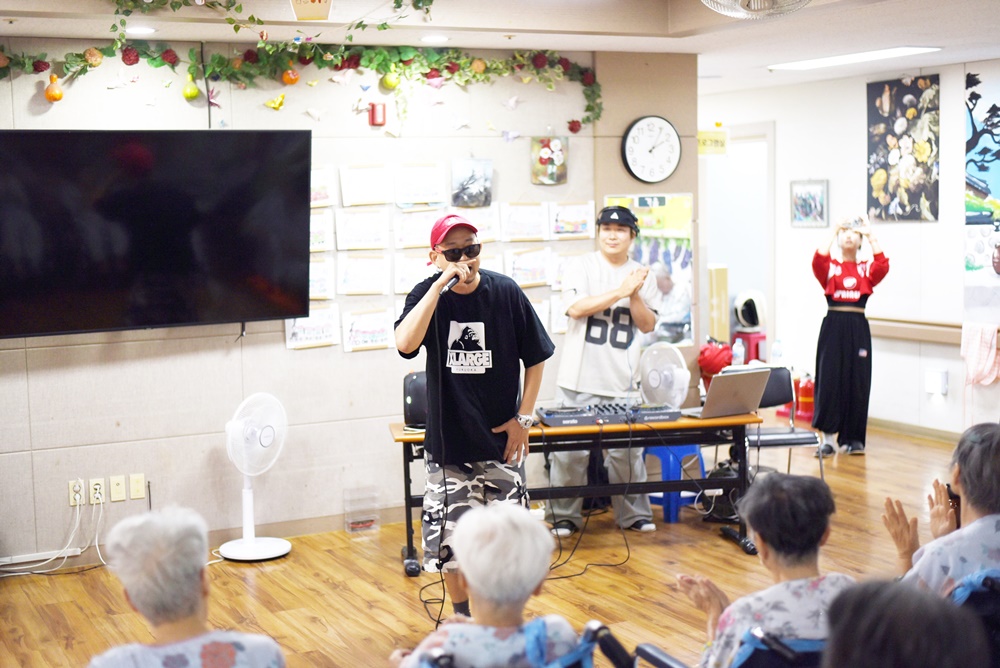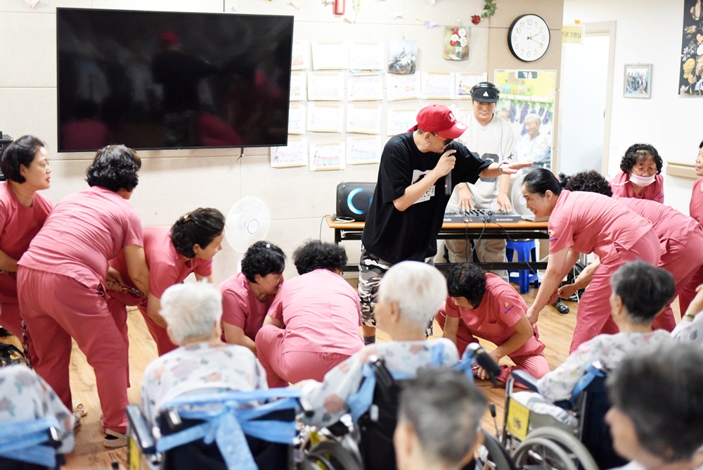 오늘 고령영생요양원에서는 대구 중구 등에서 활발히 활동하는 053보이즈와 레나, 그리고 힙합 DJ가 함께하는 특별한 봉사 프로그램이 진행되었습니다. 흥겨운 춤과 율동, 노래와 힙합 공연이 어우러져 어르신들께 활력을 드리고 즐거운 시간을 선물해 주셨습니다. 공연 중 어르신들께서 자연스럽게 몸을 움직이며 박수를 치고 따라 부르시는 모습이 인상적이었으며, 직원들 또한 함께 즐기며 웃음과 활력이 가득한 시간이 되었습니다. 무엇보다 유준석 원장님의 세심한 연결로 마련된 이번 봉사 시간은 단순한 공연이 아니라 세대가 함께 어울리고 마음을 나누는 소중한 기회가 되었습니다. 어르신들께서 프로그램에 만족해하셨고, “젊은 친구들 덕분에 기분이 좋아졌다”라는 말씀을 하시는 등 긍정적인 반응을 보여주셨습니다. 앞으로도 이와 같은 다채로운 문화·예술 프로그램이 어르신들의 정서적 안정과 삶의 활력에 큰 도움이 될 것으로 기대됩니다. |