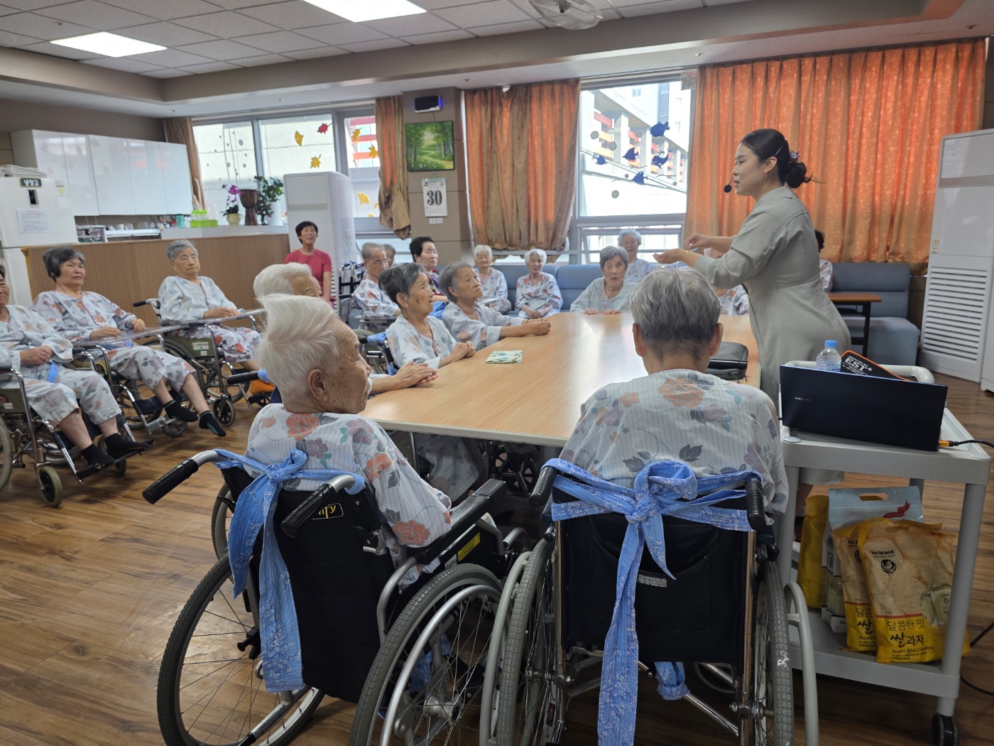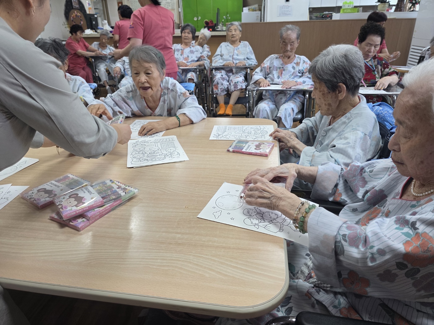 고령도서관 동화구연 시간에는 추석을 맞이하여 송편 만들기에 관한 이야기를 들려주셨습니다. 이어서 색칠 도안을 준비해 어르신들과 함께 색칠 활동을 진행하였으며, 어르신들께서 추석을 앞두고 즐겁게 집중할 수 있는 시간이 되었습니다. 또한 강사님께서 직접 과자를 준비해 오셔서 어르신들께 나누어 드리며 더욱 따뜻한 시간이 되었습니다.