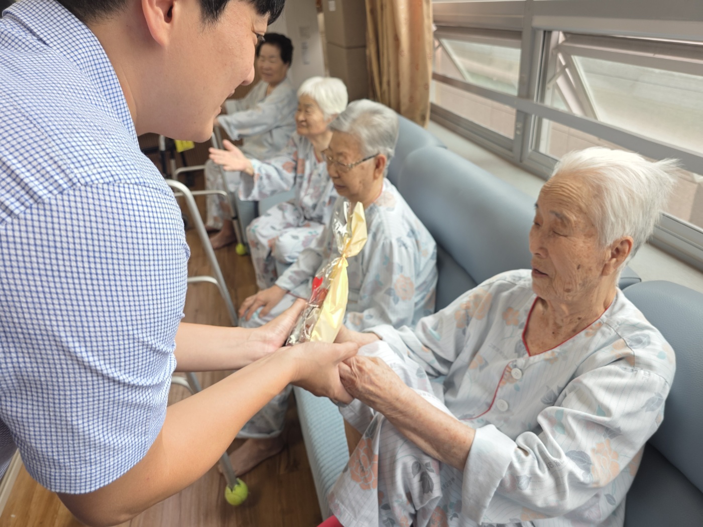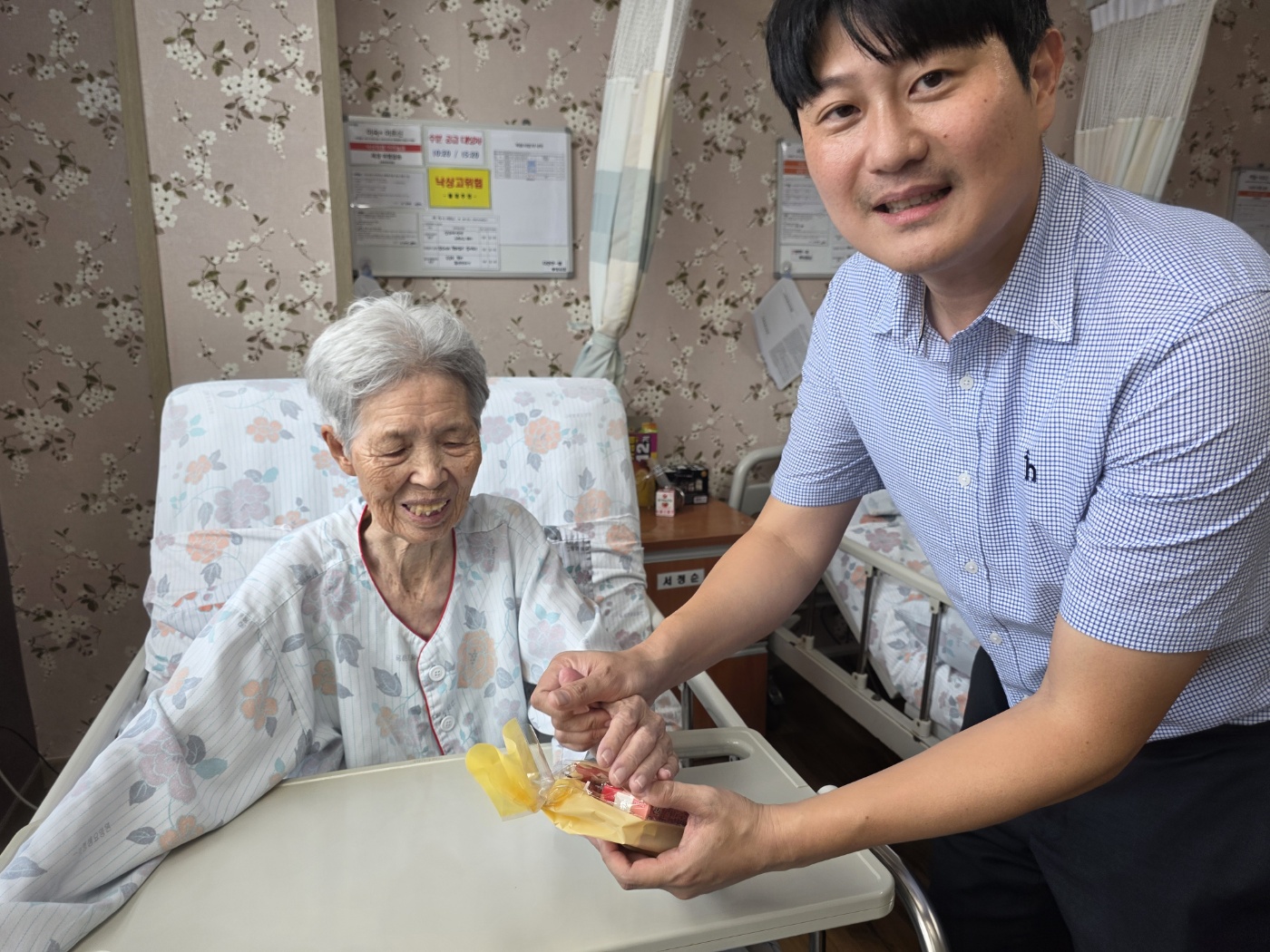 추석을 맞아 유준석 원장님께서 직접 어르신들을 찾아뵙고 정성껏 준비한 간식 꾸러미를 전달해 드리는 시간을 가졌습니다. 어르신들께서는 따뜻한 마음을 전해 받으며 행복해하셨고, 그 모습에서 큰 보람을 느낄 수 있었습니다. 이번 행사는 명절의 의미를 함께 나누고 어르신들께 정서적 안정과 가족 같은 따뜻함을 드린 소중한 시간이 되었습니다. 앞으로도 어르신들이 건강하고 즐겁게 시설 생활을 이어가실 수 있도록 다양한 정서 지원 프로그램을 지속적으로 운영할 계획입니 |