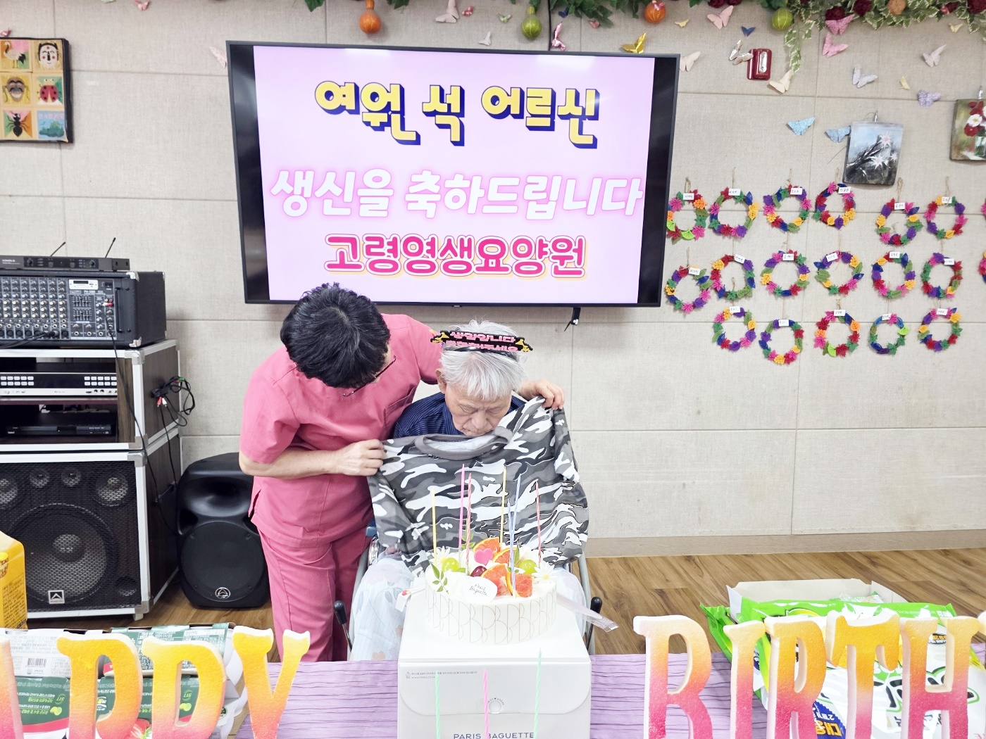 10월 생신 잔치에 김상연 어르신은 따님께서 참석하셔서 간식과 음식을 챙겨주셨으며, 어르신은 오늘 컨디션이 좋아 전반적으로 기분이 좋으셨습니다. 짜장면을 맛있게 드시고, 케이크와 약밥도 즐겁게 섭취하셨습니다. 또한 제공된 조끼와 티셔츠를 받으시며 기뻐하셨습니다. 행사 중 촬영된 사진은 가족분들에게 전달하여 즐거운 추억으로 남길 수 있도록 하였습니다. 이번 생신 잔치를 통해 어르신은 가족과 함께하는 시간을 즐기며 정서적 만족감과 기쁨을 느끼셨으며, 프로그램 참여에도 긍정적인 반응을 보여주셨습니다. |