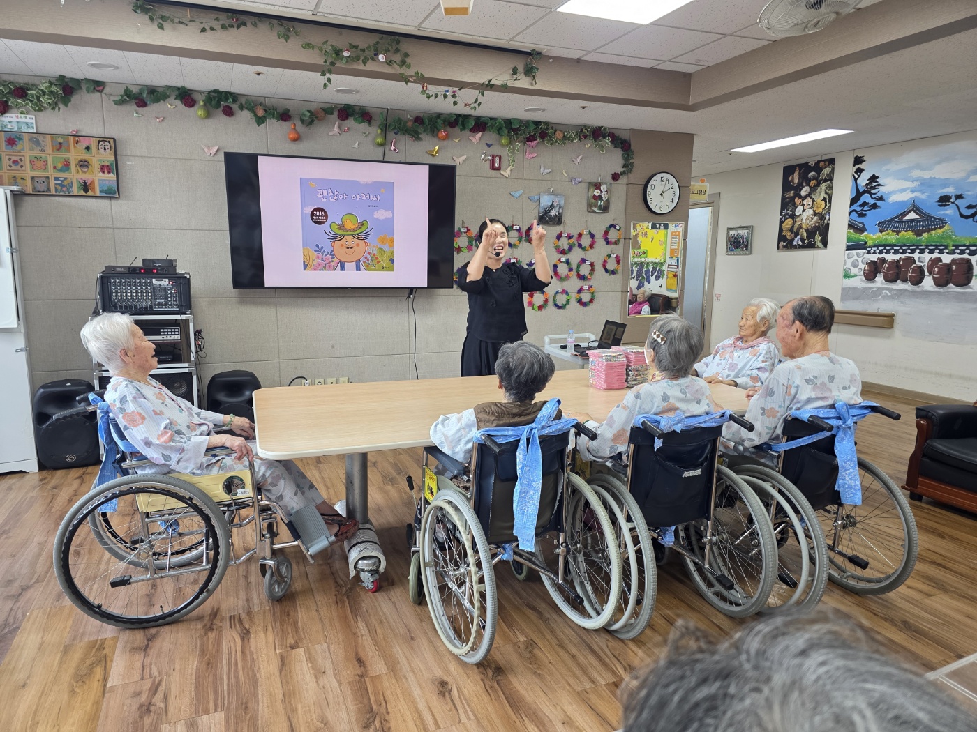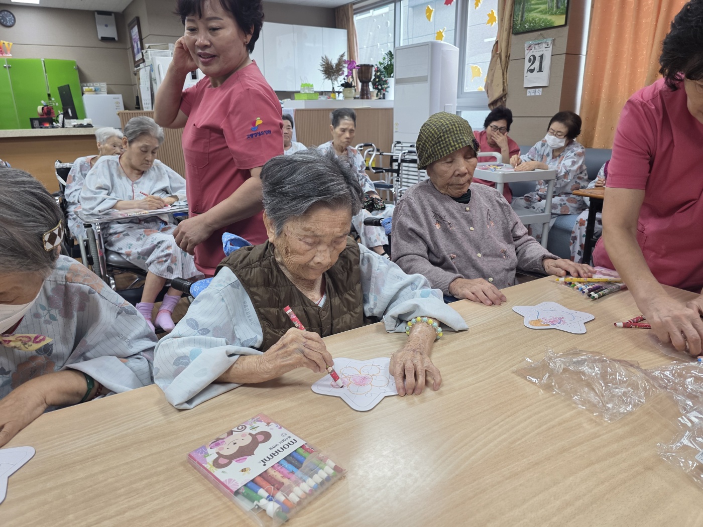 이번 동화구연 시간에는 「그래도 괜찮아」 동화를 함께 읽으며 어르신들이 이야기에 공감하고 웃음을 나누는 즐거운 시간이 되었습니다. 동화 내용을 통해 따뜻한 위로와 긍정적인 메시지를 느끼셨고, 이후 진행된 퍼즐 색칠 활동에서는 집중하며 색을 고르고 맞추는 과정에서 성취감과 만족감을 표현하셨습니다. 어르신들은 “책 읽는 시간이 참 좋다”, “색칠하니 마음이 편해진다” 등 긍정적인 반응을 보이셨으며, 인지 자극과 정서적 안정 모두에 도움이 된 프로그램이었습니다. |