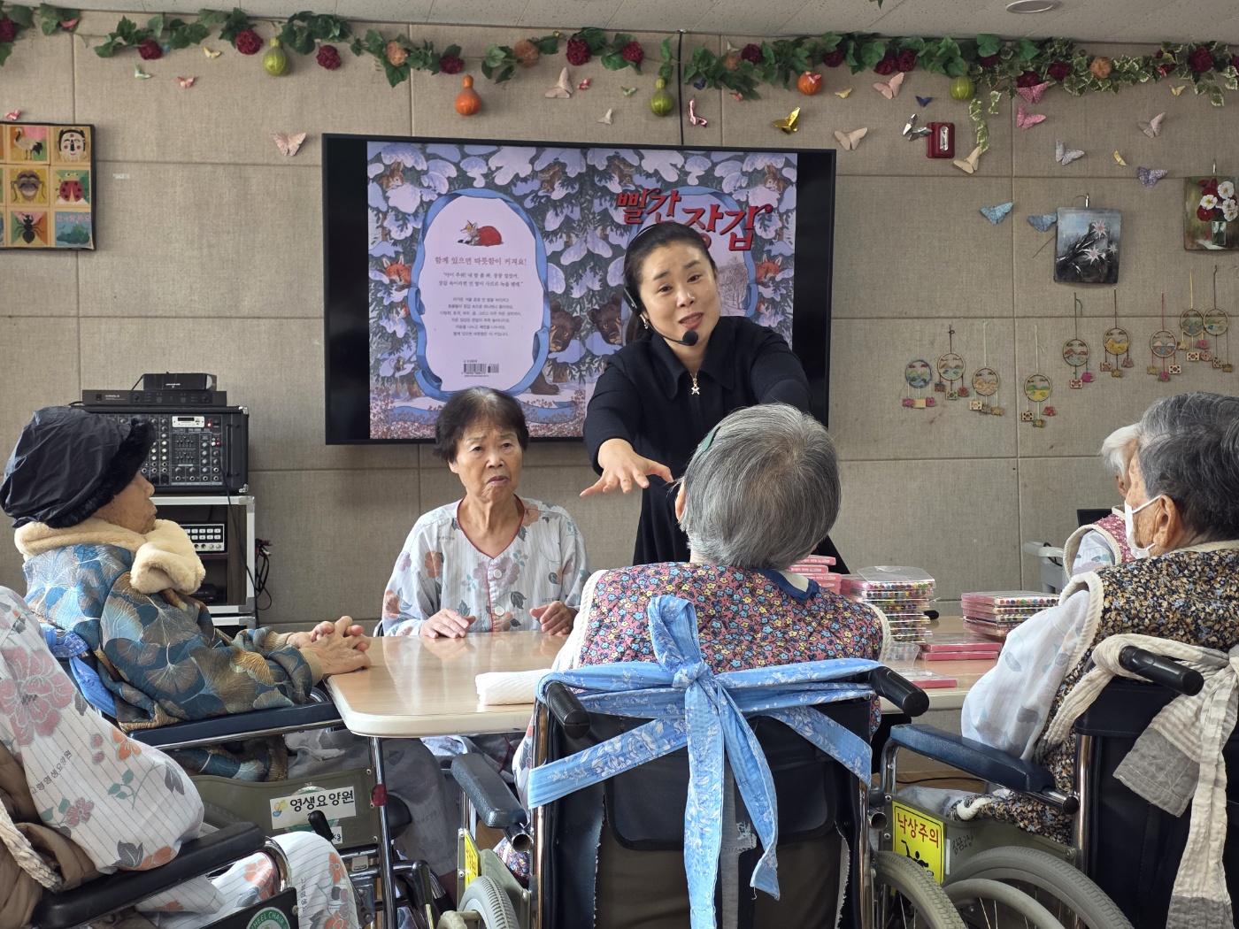 | 동화를 함께 읽는 시간은 어르신들에게 늘 웃음과 공감을 선물합니다. 이날은 ‘빨간 장갑’ 동화를 읽어드렸는데, 이야기 속 따뜻한 장면마다 고개를 끄덕이시며 예전 추억을 떠올리는 모습이 참 인상적이었습니다. 동화가 끝난 후에는 어르신들을 위해 준비한 목도리 만들기 키트를 활용해 각자 자신만의 목도리를 꾸며보는 시간을 가졌습니다. 실을 고르고 색을 맞춰가며 정성스럽게 완성한 목도리는 올겨울을 따뜻하게 보내는 데 큰 보탬이 될 것 같습니다. 작은 손끝 활동 속에서도 즐거움과 성취감이 가득했던 의미 있는 프로그램이었습니다. | |||