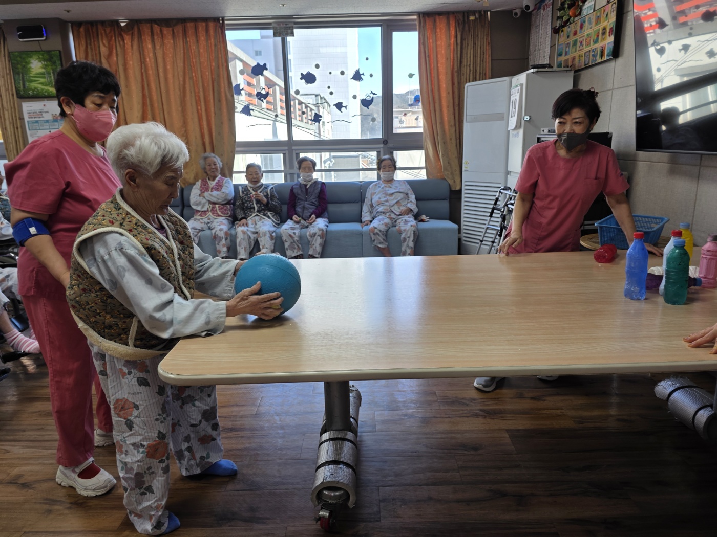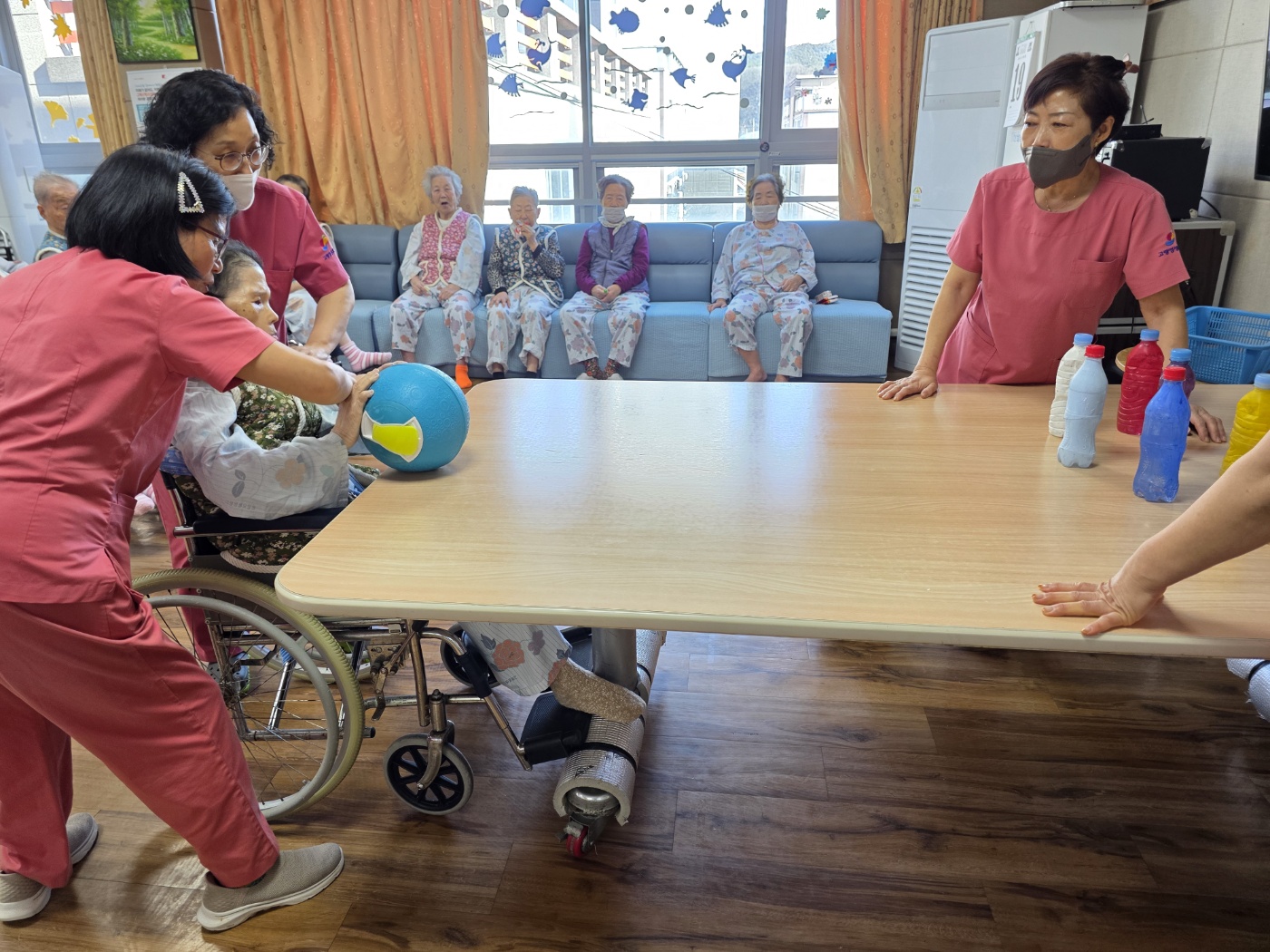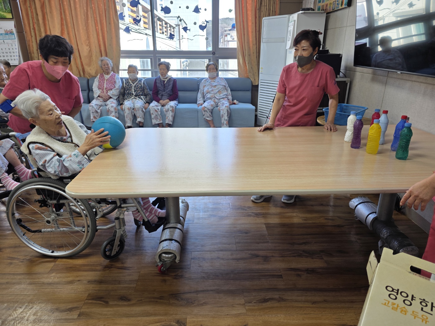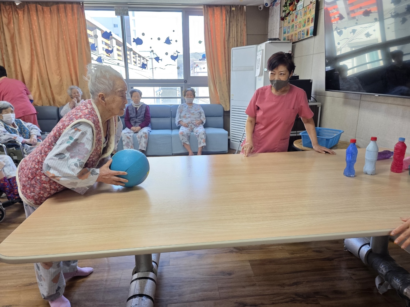 | 버려진 PET 물병을 재활용해 볼링핀으로 활용하고, 어르신들께서 직접 색칠하며 완성하는 참여형 프로그램으로 진행되었습니다. 일회성 놀이가 아닌 재활용 자원을 활용한 활동이라는 점에서 환경 보호의 의미를 자연스럽게 전달할 수 있었고, 어르신들 또한 “버릴 물건이 이렇게 쓸모 있게 쓰일 수 있구나”라며 흥미를 보이셨습니다. | |||