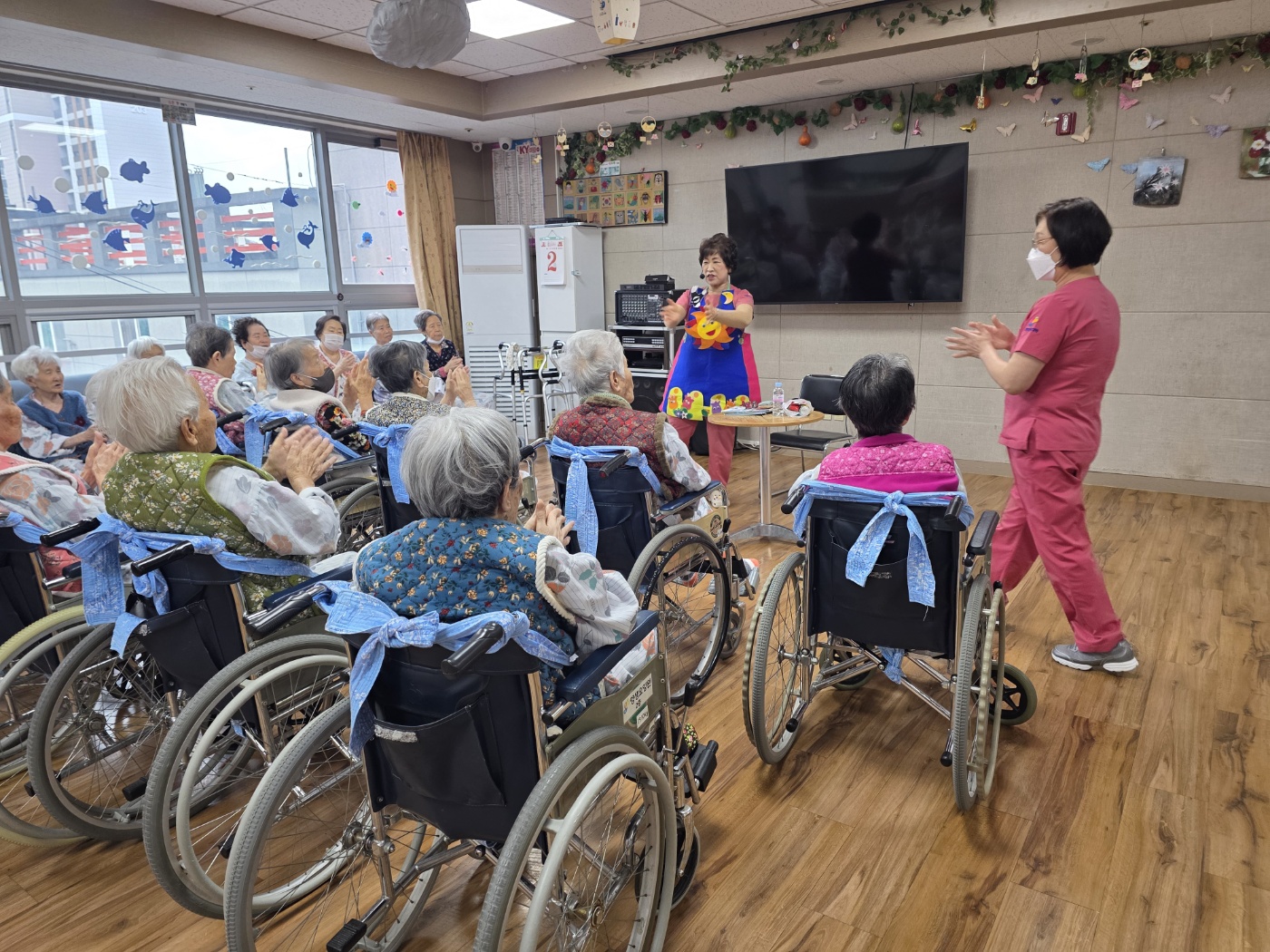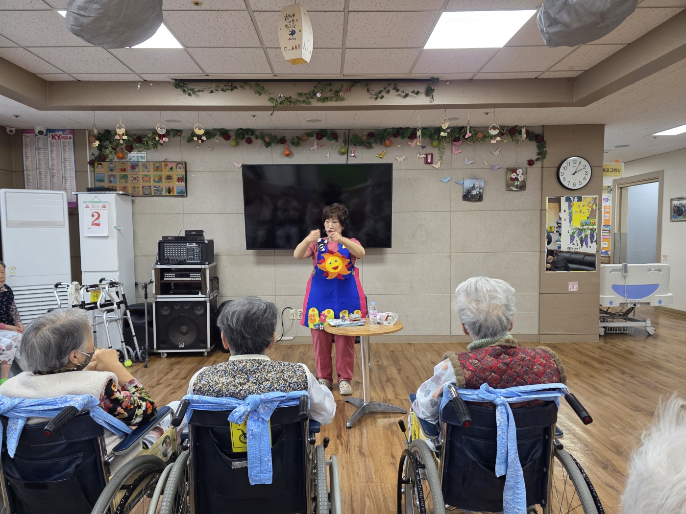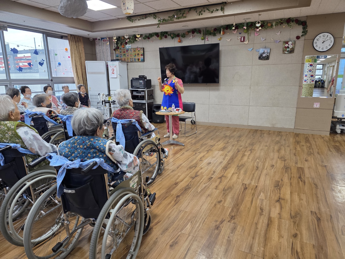 어르신들 인지 쑥쑥 손유민 선생님의 동화구연 시간입니다 비가 오는 날이라 축 처질수 있는데 모여서 재미있는 동화를 들으시니 기분이 쑥
